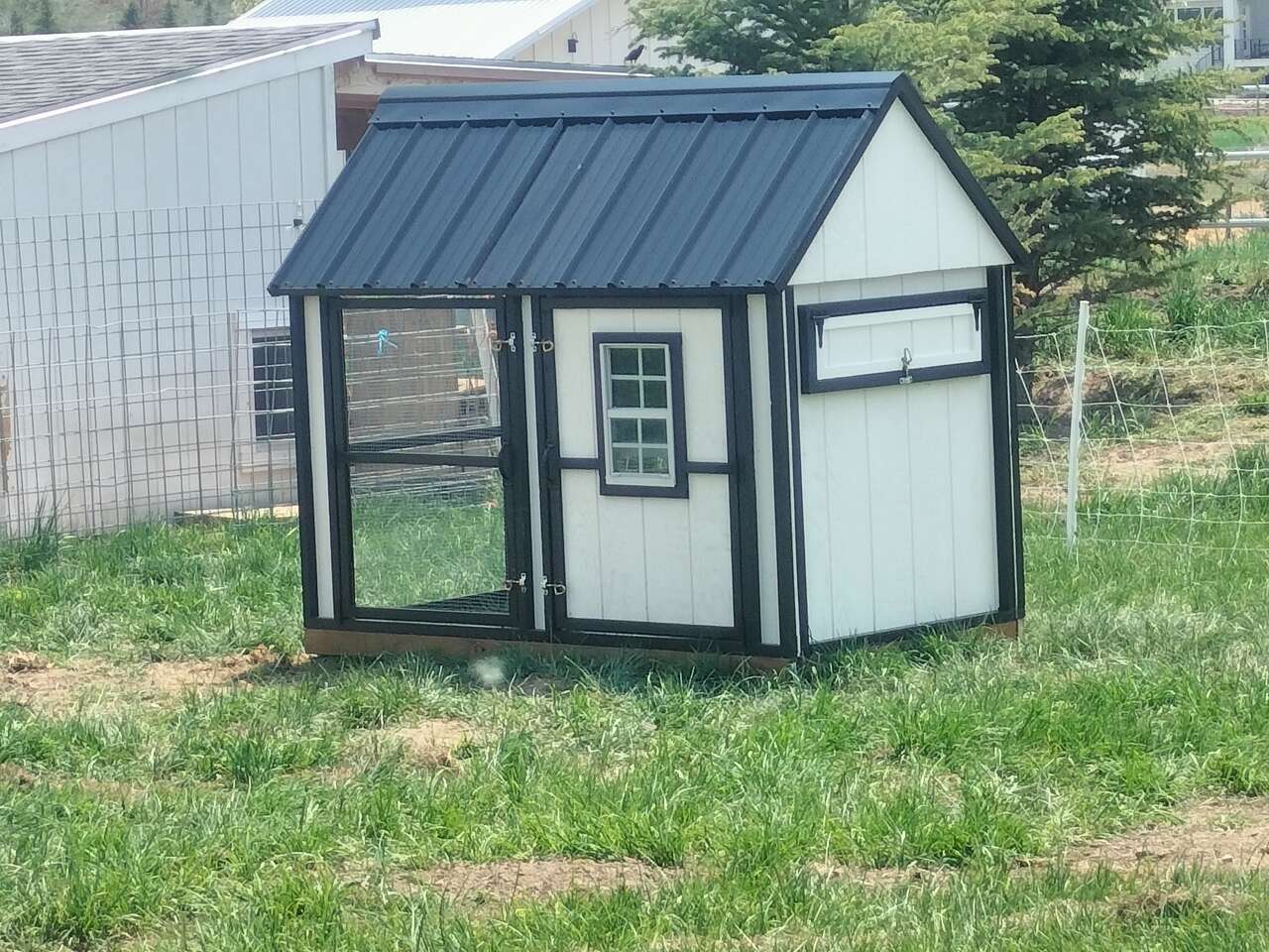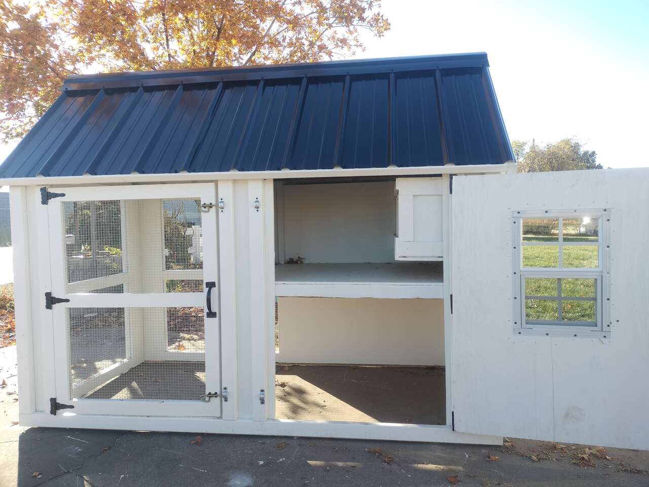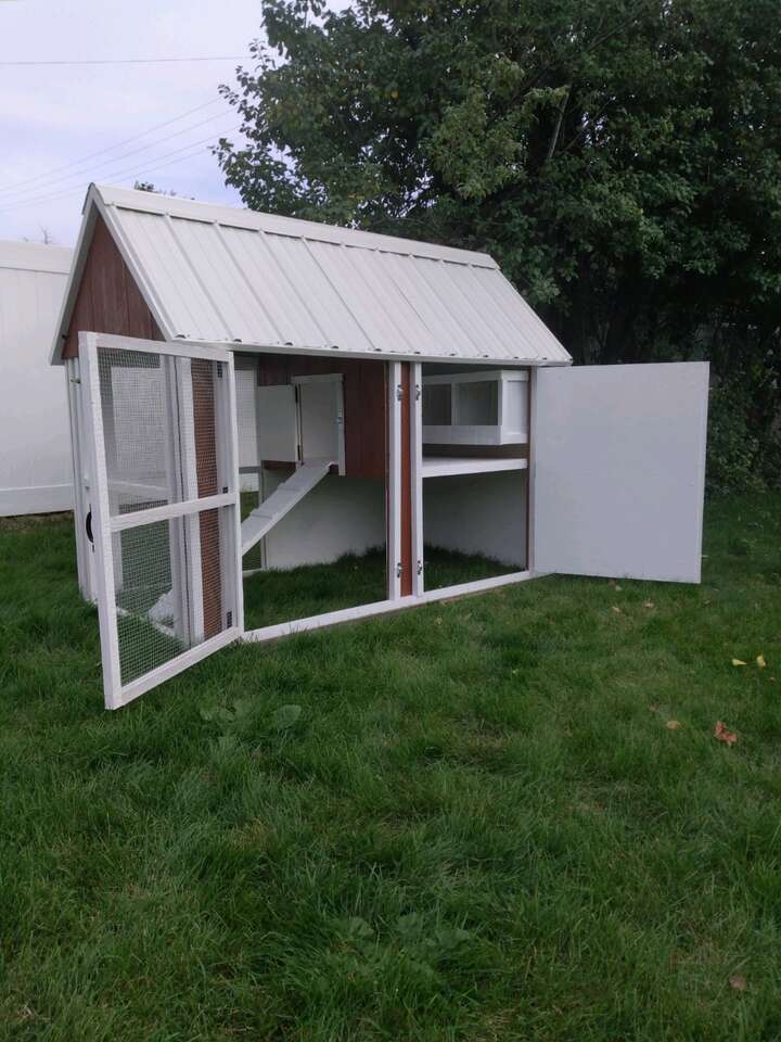 VenmoThese coops are proven to be a safe and comfortable place for a small back yard flock ,comes complete with 3 nesting boxes with outside access along with enough roosting space for 8 chickens . paint included !.
