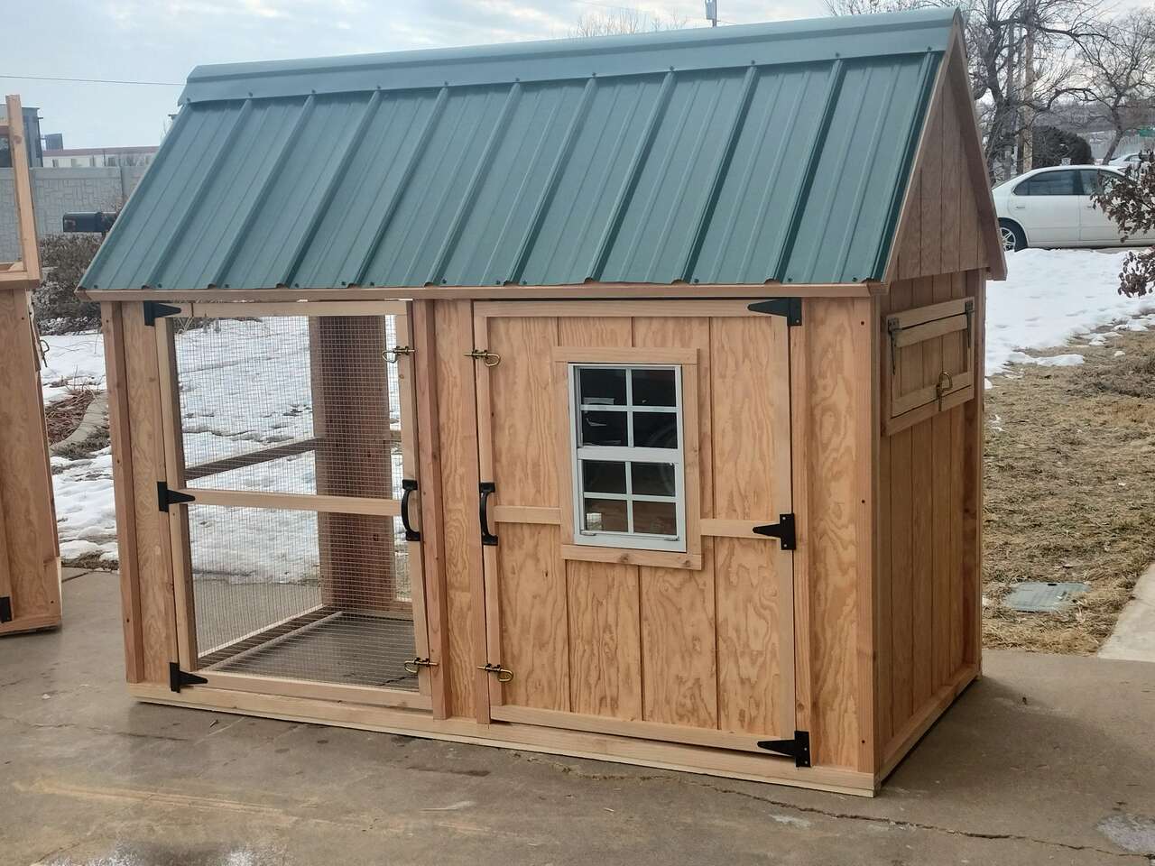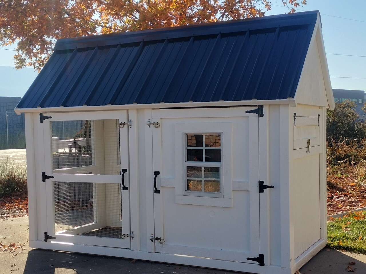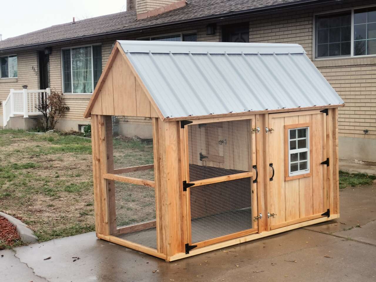VenmoThese coops are proven to be a safe and comfortable place for a small back yard flock ,comes complete with 3 nesting boxes with outside access along with enough roosting space for 8 chickens . paint included !.