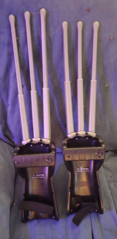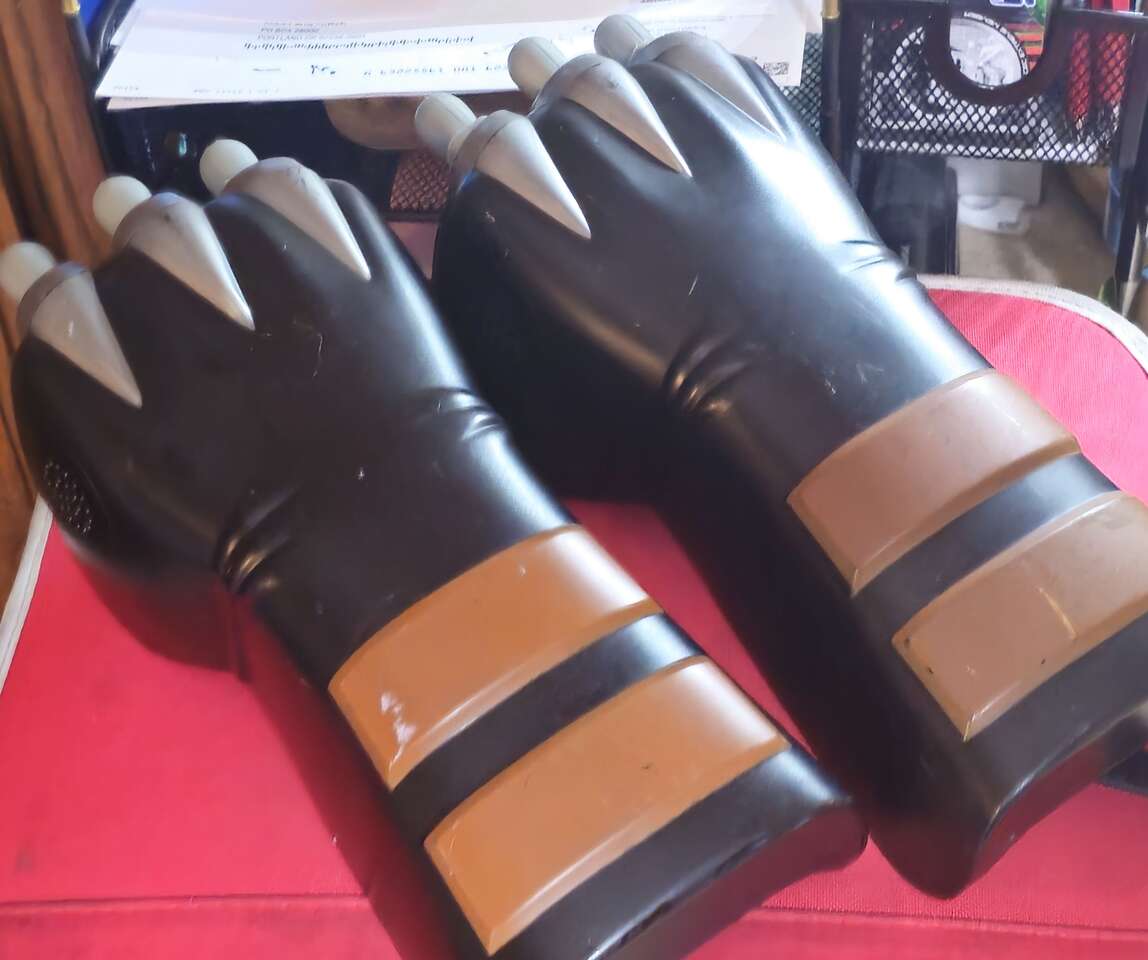 I'm selling a pair of Wolverine retractable claws that also have sound effects when retracted and slashing movements. I got them for my son when he was younger. Wasn't used much and then stored with the rest of his toys. I just thought someone could maybe use them for their Halloween costume. They are very cool and very fun to play with. The claws are plastic with rounded plastic tips so there's no sharp Areas there is a wrist straps and a handle, so they stay secure on your arm. They have brand new batteries. do yourself a favor and look them up online because they are very special and really cool. I hope they can make someone happy. If any questions, please let me know