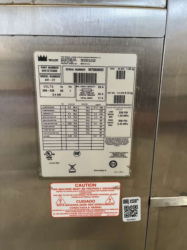 This high-quality commercial milkshake and smoothie machine is a must-have for any business looking to enhance their beverage offerings. The 2018 Taylor 441-27 Shake Machine has a 20 quart hopper and 7 quart freezing cylinder, making it perfect for creating delicious and refreshing frozen drinks. With its durable design and easy-to-use interface, this machine is perfect for both small and large businesses. Whether you're a restaurant, bar, or convenience store, the Taylor 441 Shake Machine is a great addition to your beverage equipment. So why wait? Get yours today and start enjoying the benefits of this top-of-the-line commercial milkshake and smoothie machine. Also makes Dole Whip & Italian Ice. I have 3 available.