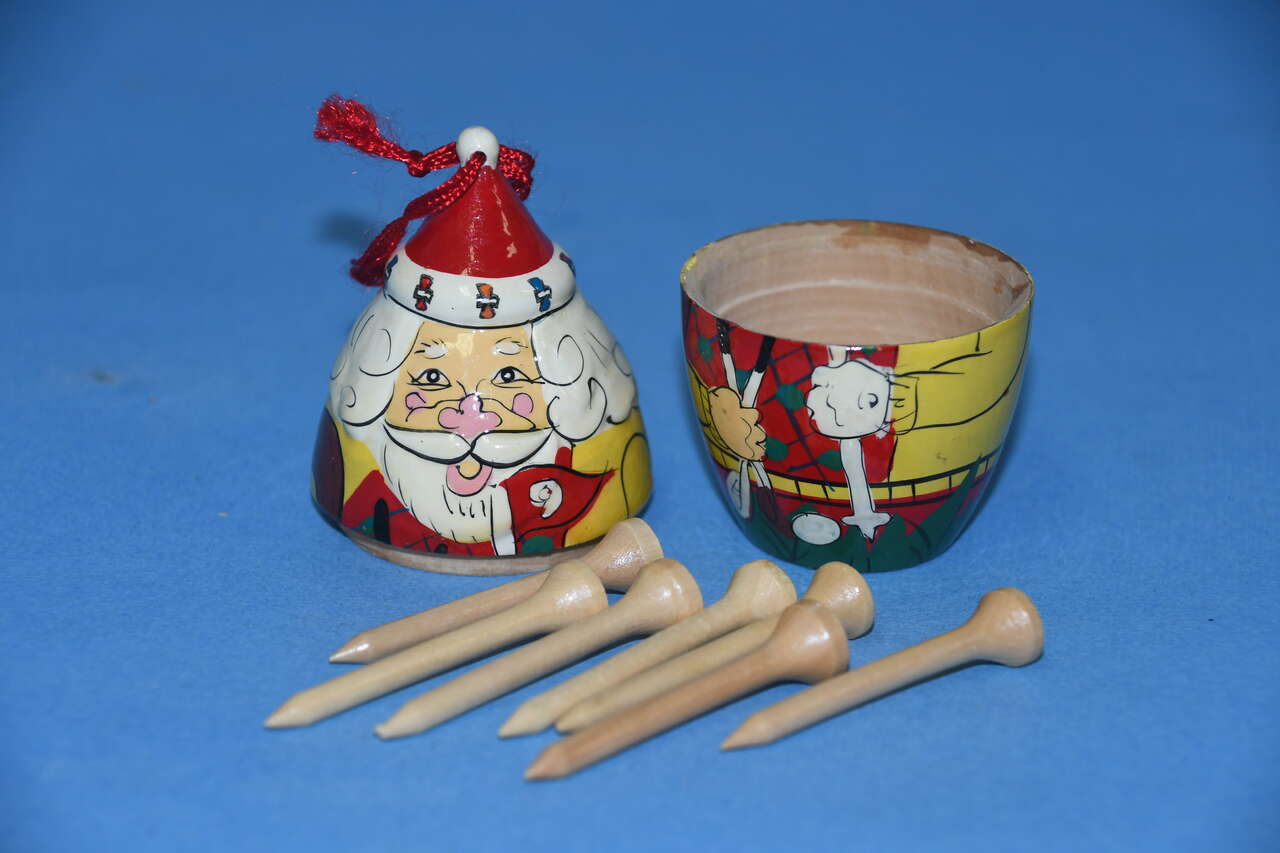 This 4" GOLFING SANTA CHRISTMAS ORNAMENT is from a smoke free home. It comes with 7 GOLF TEES. Questions??? Please ask. We are located in Plain City. Cash only please.