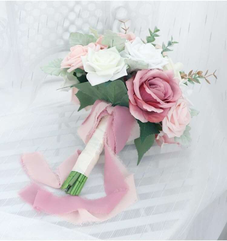 Premade & Convenient: Bridesmaid bouquet is READY TO USE.Bouquet for wedding will never wilt and ready whenever you need them,save tones of time instead of counting and buying flower materials.
