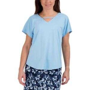 Features: - Moisture wicking • Stretch fabric • Wrinkle resistant • Relaxed • Classic v-neckline features a cute binding detail • Easy care • Made in Vietnam