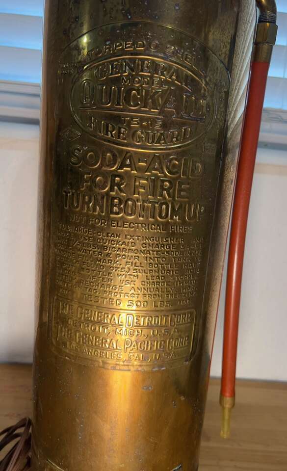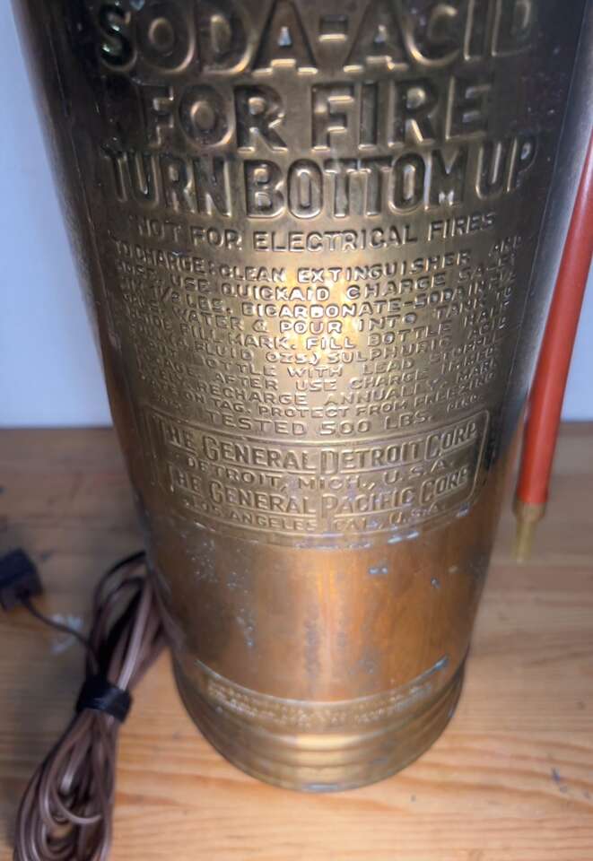 Torpedo shell fire extinguisher lamp Detroit pacific Corp Los Angeles.
