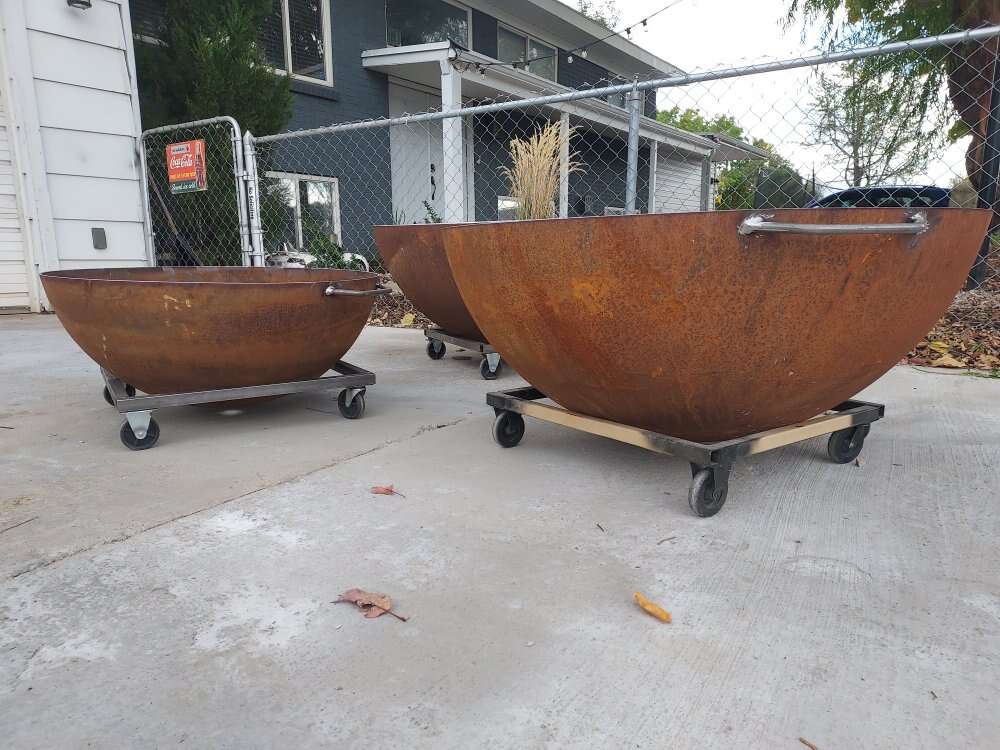 make a great starting point for a fire feature. 30,and 36 are $300. the 40 is$350. You choose handles or no handles Have optional bases, legs,and cooking grill. Payment in cash