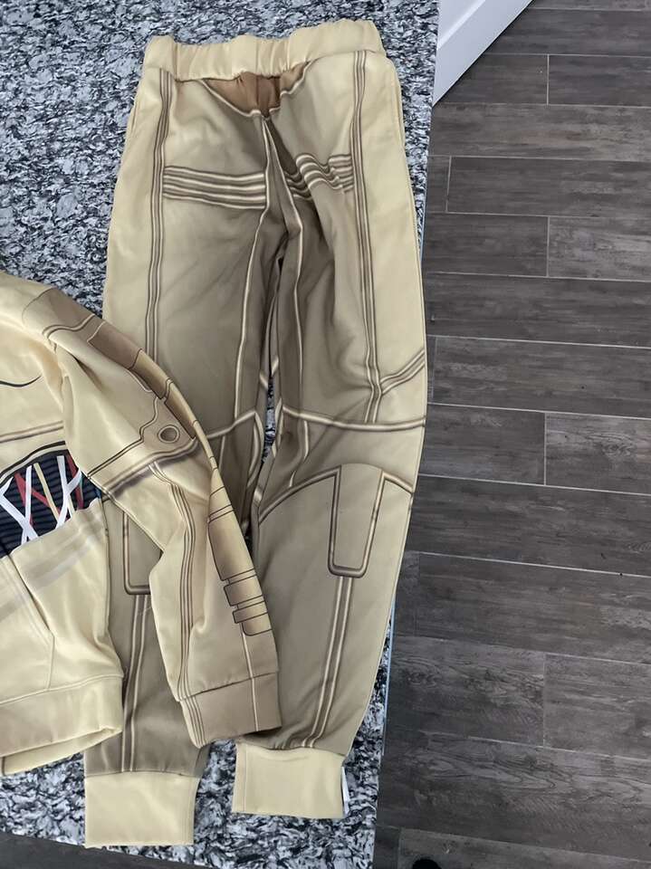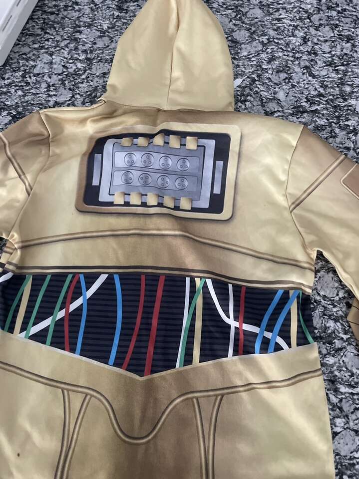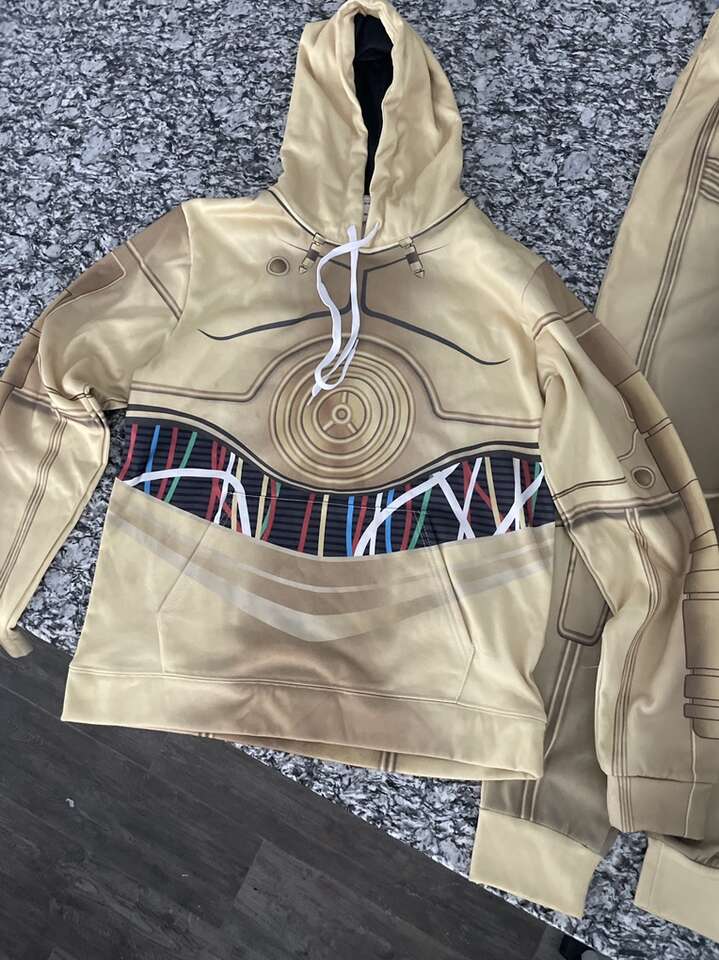 You know you want to be everyone’s favorite Star Wars droid for Halloween, but you didn’t know how!!! Well no worries, I’ve got you. This amazingly comfortable stylish hoodie set comes with front and back printing in what the size lists as adult small… maybe it is a men’s small but it feels more like a loose medium to me. Feel the force- be C-3PO! Cash or Venmo preferred, text is the quickest way to get a response. Thanks and Happy Halloween! #best costume in the galaxy!