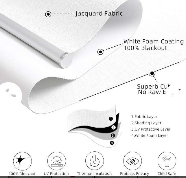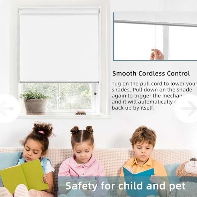 Excellent Material : Made of 100% blackout Striped Jacquard fabric coated with white backing feeling soft and smooth. Our shade blind features a clean & modern look equipped with metal chain and aluminum bottom rod. Our Cordless roller shade is made of durable fabric and sturdy hanging system. Safety Cordless Design : The best safety solution for your children and pets. Our spring-loaded mechanism has passed 5 000 times usual lifting or pulling down tests for each shade.To open the roller blind pull it at whatever position you want. To shut the roller blind you can gently pull the buckle and the roller blind would automatically close. Multiple Function and Scenario Our office roller shade blocks out 100% sunlight and UV rays. The thermal insulated backing can reduce room heat and cold loss through window during winter and summer helping cut your energy bills. It also works well in noise reducing and privacy protection. Great for bedroom living room bathroom kitchen French door and office.