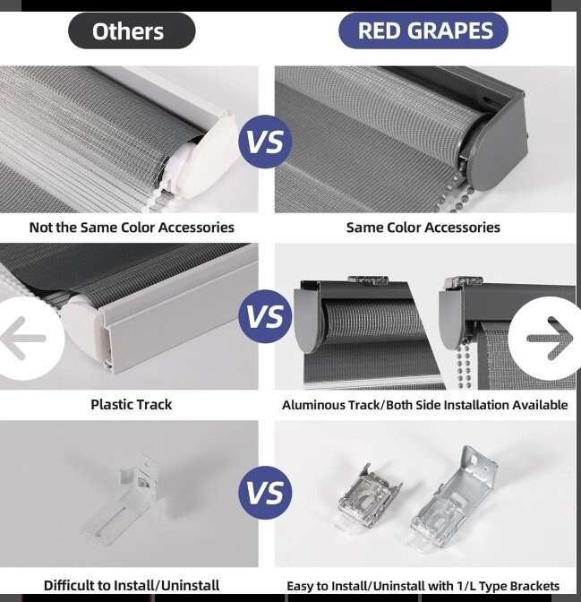 Red Grapes Zebra Blinds Dual Layer Roller Shades 30x72in Grey.