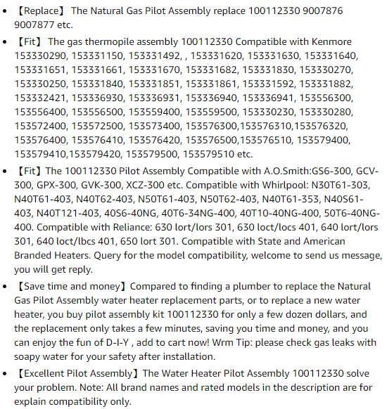 VenmoWater heater thermopile assembly ignitor sensor a.o.smith, kenmore, whirlpool, reliance, etc