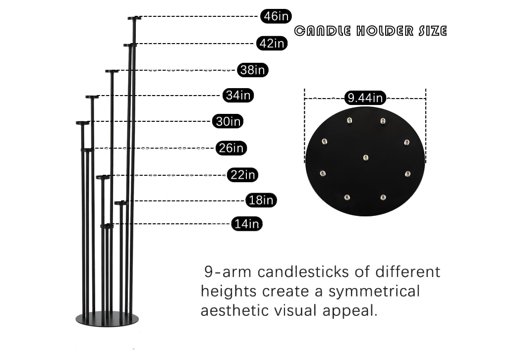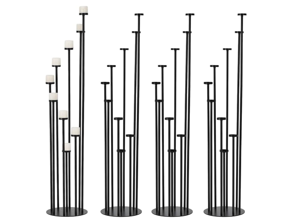 New Set of 4 Floor Candle Holders 9 Arm Candle Holder for Fireplace Decoration,Black Metal Candle Stick Holders for Pillar Tealight Candles. 1 out of the 36 candle bases, the paint is chipped. See Pic. Candles not included.