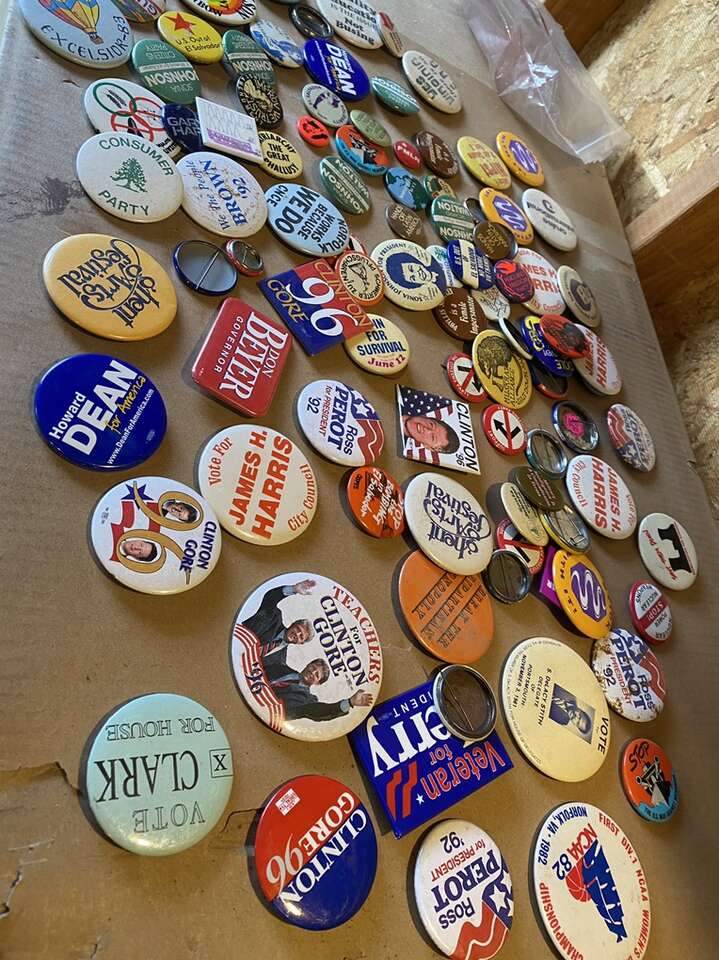 Vintage collector, political, etc. badges the whole lot asking $50 cash call or text Charlie at 650-468-6168 cash only no Venmo or other local pick up in bountiful. Thank you.