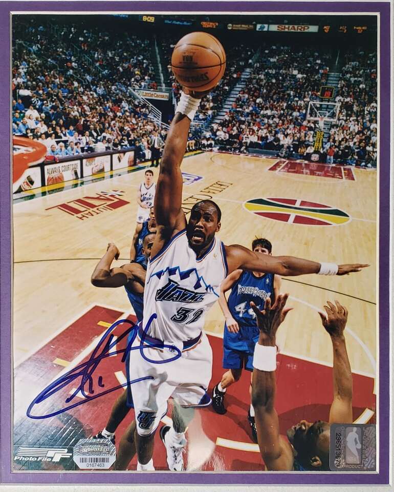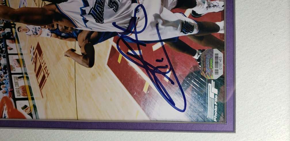 Karl Malone Autograph Signed Frame 8x10 photo. 1998-1990, Jazz vs Timberwolfs, Delta Center. NBA License and Mounted Authentification. text message is better, see my other adds, thank you.