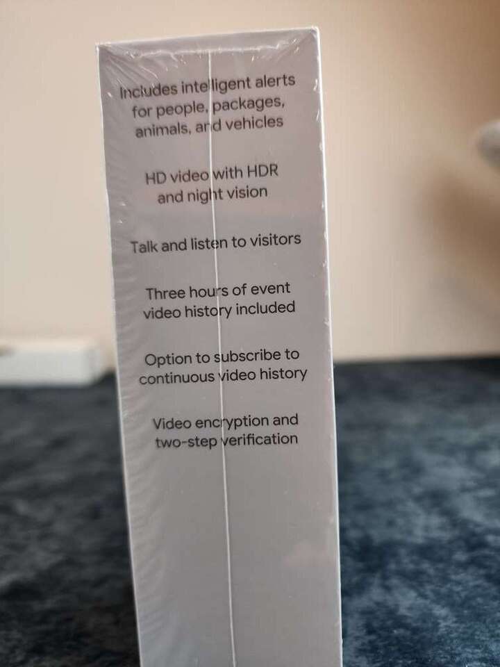 Google Nest Gen. 2 Door Bell Camara. New in box, never opened.Paid $180.00. I have one on my old house love it. Bought this for my new home didn't know it already has a whole home system, so I won't be needing this after all.