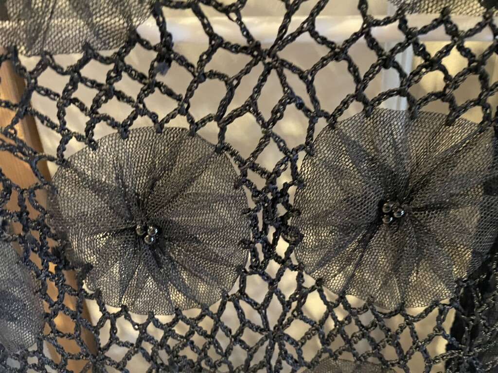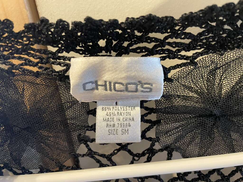 I have a really cute black loosely crocheted jacket by Chico’s. It has round flowers with a few beads in the centers. It is a size Small. See my other ads for jewelry, artwork, home decor and more.