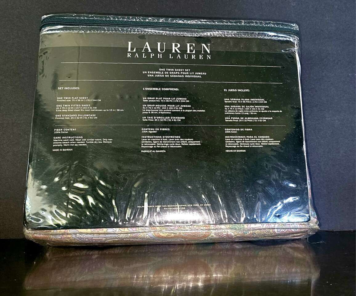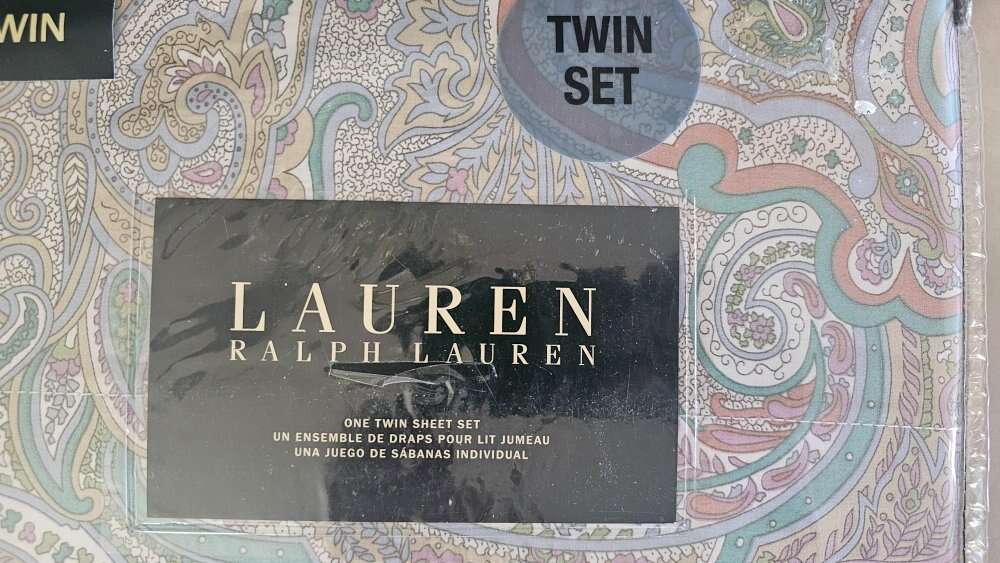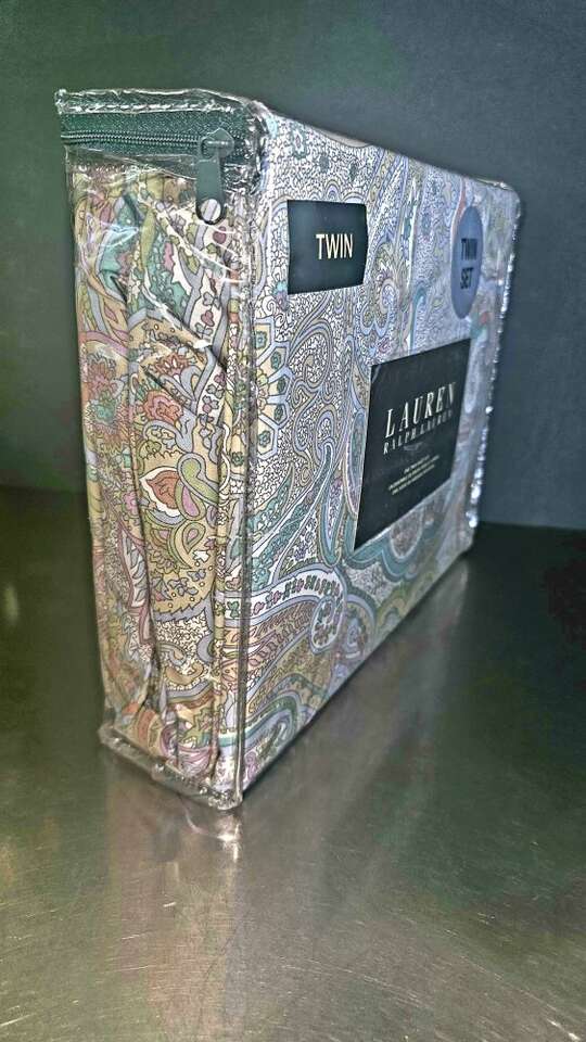 Paisley NEW, NEVER opened, TWIN sheet set. Very pretty lavender, teal, salmon, tan, pick, cornflower blue & light green colors with white background.