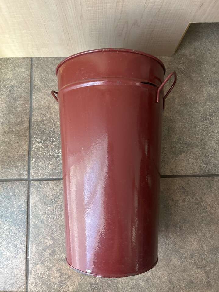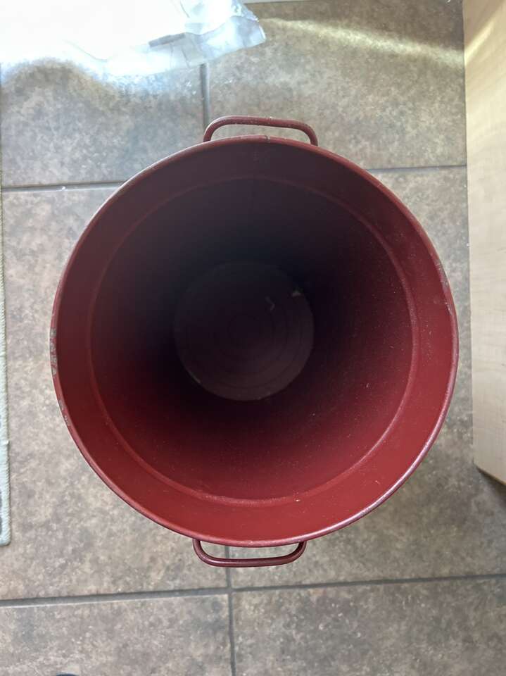 Vintage French Flower Bucket in Metal and burgundy in color. 12.75 inches tall and about 8 inches in diameter. A little paint chips that gives it a rustic look. Fundraising. PU in Woods Cross