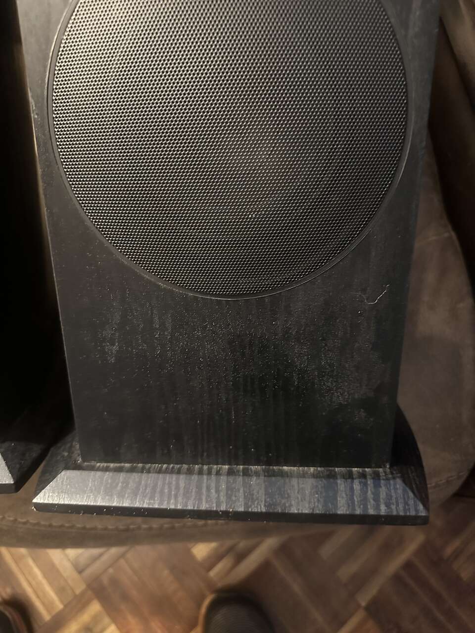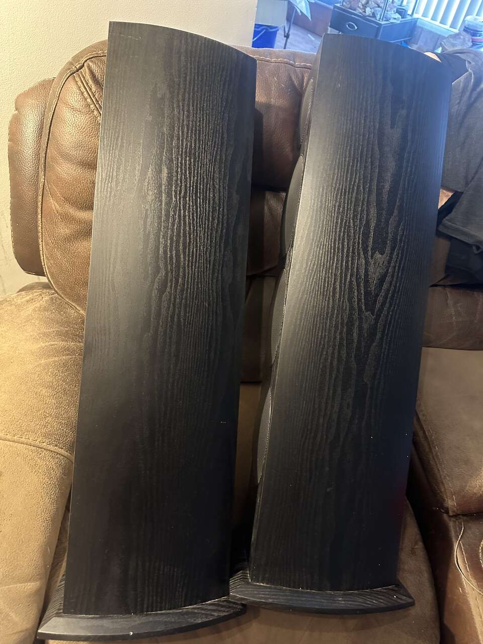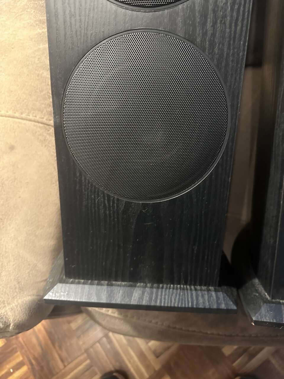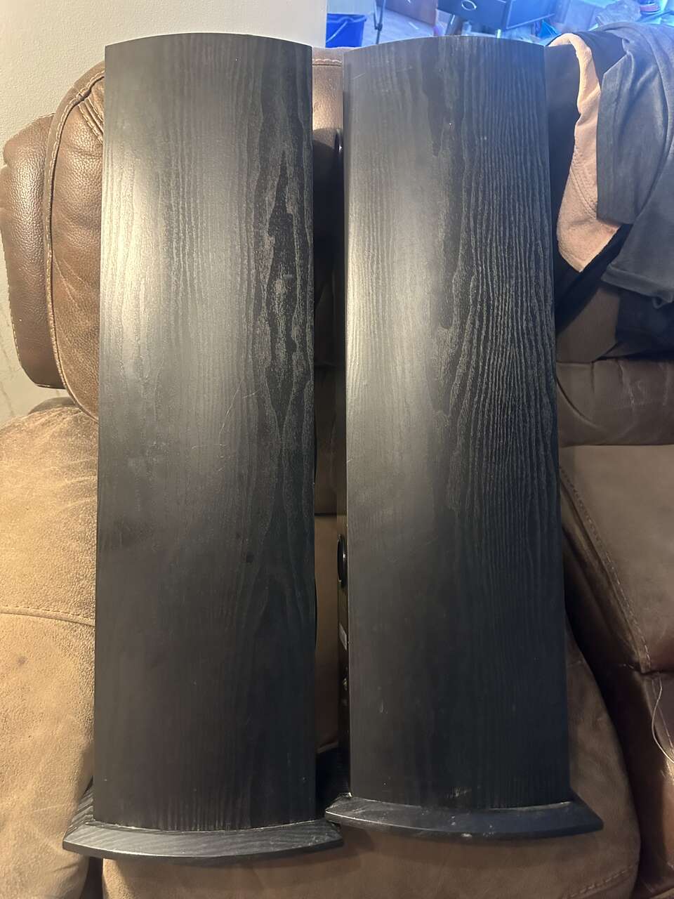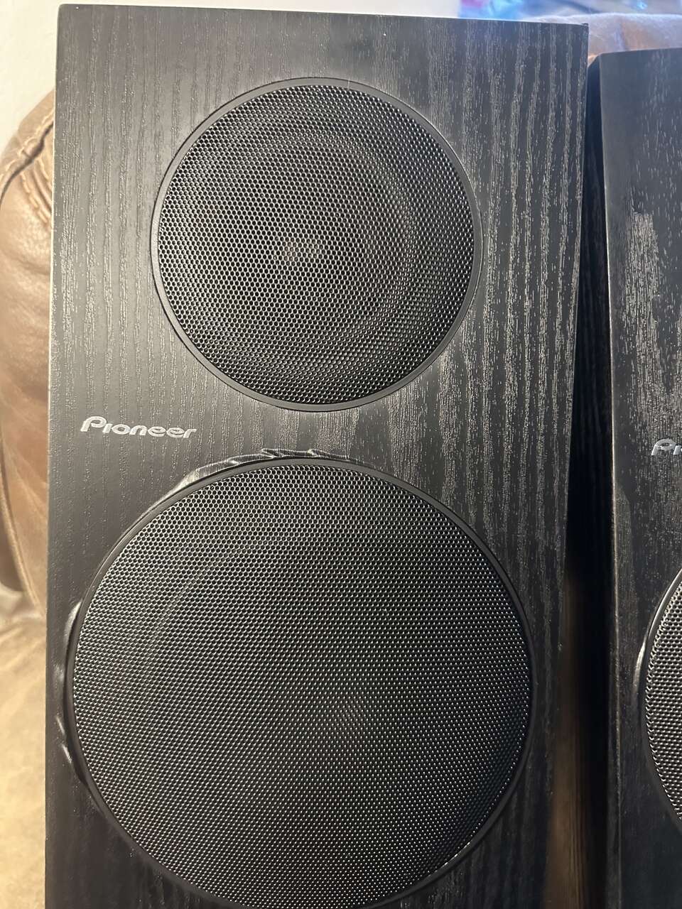 PayPalTESTED WORKING! They sound awesome. There are minor age imperfections on area around speaker edges (see pics). This is no way affects how they perform. $250.00 OBO This is highly rated compact Pioneer floor standing pair of speakers (left and right) designed by Andrew Jones with Three 5-1/4” Structured Surface Woofers, and 1” High Efficiency Soft Dome Tweeter. Dims are 10.70 x 8.90 x 35.20 inches. CURVED DESIGN. These speakers utilize a RF Molded Curved Cabinets design to reduce internal standing waves, resulting in high-performance and exceptional sound quality. FEEL THE BASS. A structured surface with oversized magnets improves rigidity and bass accuracy. A vented pole piece also improves bass response for deep, beautiful sound. TWEETER EFFICIENCY. To widen the sweet spot of the 1-inch High Efficiency Soft Dome tweeter, we’ve engineered a custom wave guide. Increasing tweeter efficiency, together an 8-Element Complex Crossover, allows the SP-FS52 to bring the sound. COMPLEX CROSSOVER. 8 Element Complex Crossover perfectly blends audio between the woofer and tweeter for greater accuracy.
