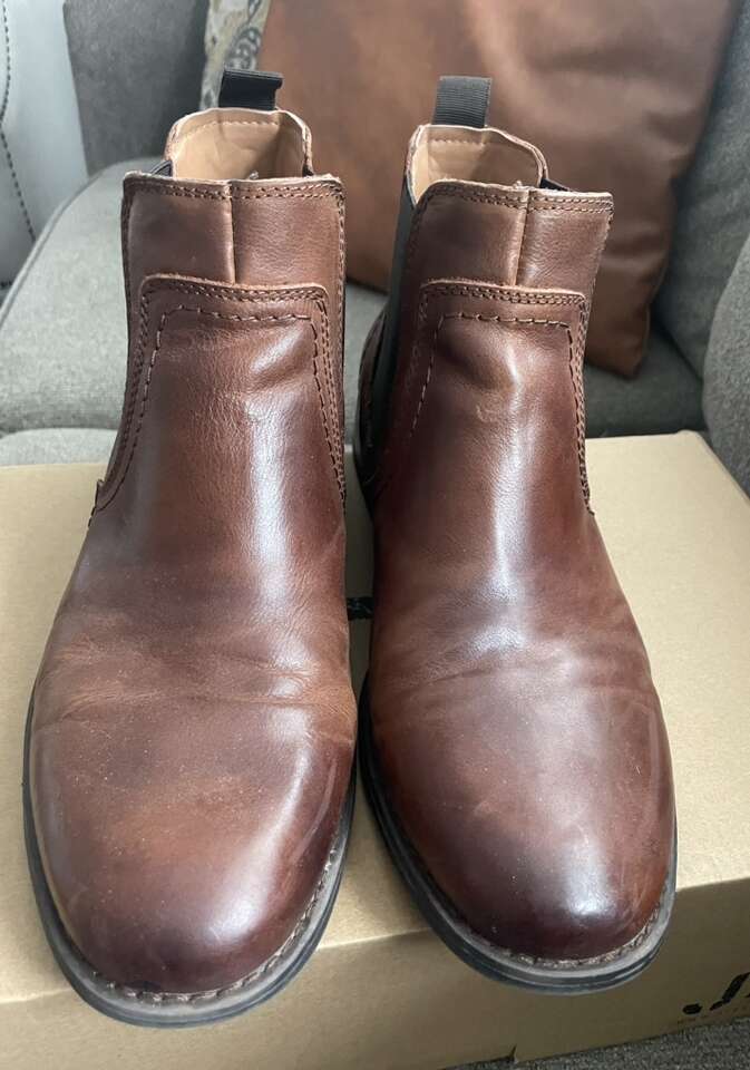 They have been worn but are still in good condition. Color is a brown and they are a size 9 men’s. Asking $15. Cash only