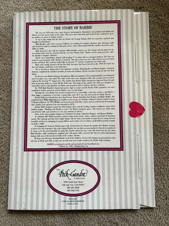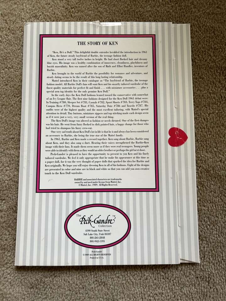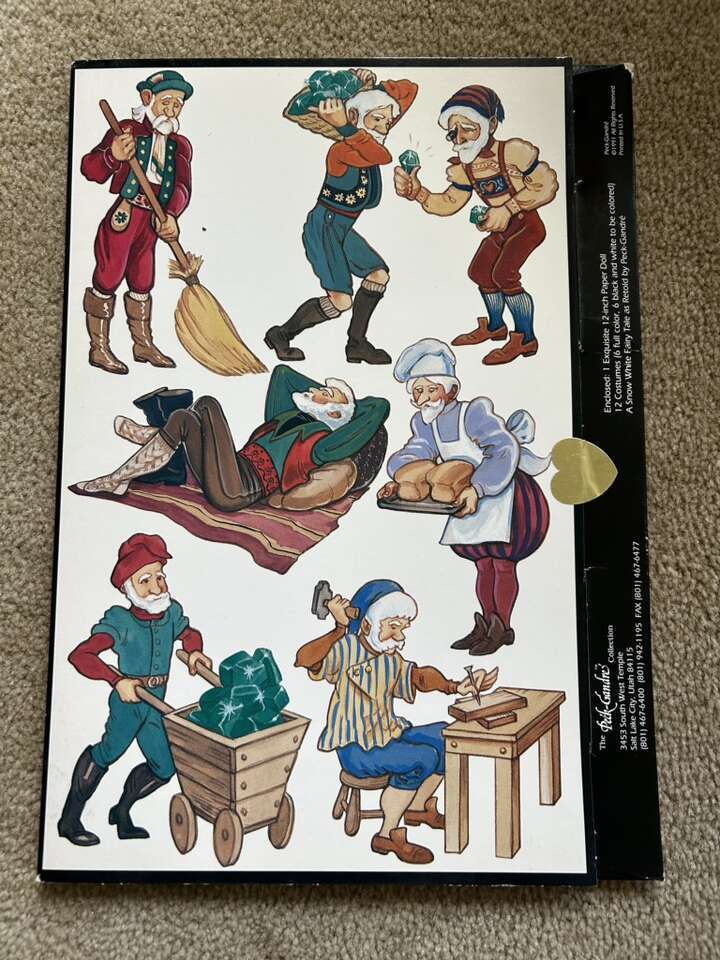 NEW, Uncut Vintage 1986-1991 Peck-Gandre 12" Paper Dolls. Ken, Blonde Barbie, Brunette Barbie; Enchanted Forest series: Beauty and the Beast, Snow White and the Seven Dwarfs, Goldilocks and the Three Bears, Rapunzel, Cinderella, Little Red Riding Hood, Prince Charming; French Doll Series: The Steiner. 11 complete sets, sealed envelopes, uncut dolls and outfits. New, unused condition. Corners of sturdy envelopes slightly worn. $10 each, price negotiable for multiple/all. Text only. Cash or Venmo.