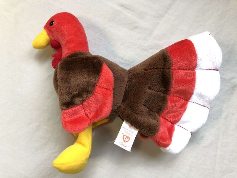 $10. Gobbles the Turkey 1997 TY Beanie Baby Thanksgiving measures approx. 5.5" tall x 8" wide when seated. Cash preferred. Pick up only in southwest Orem or American Fork.