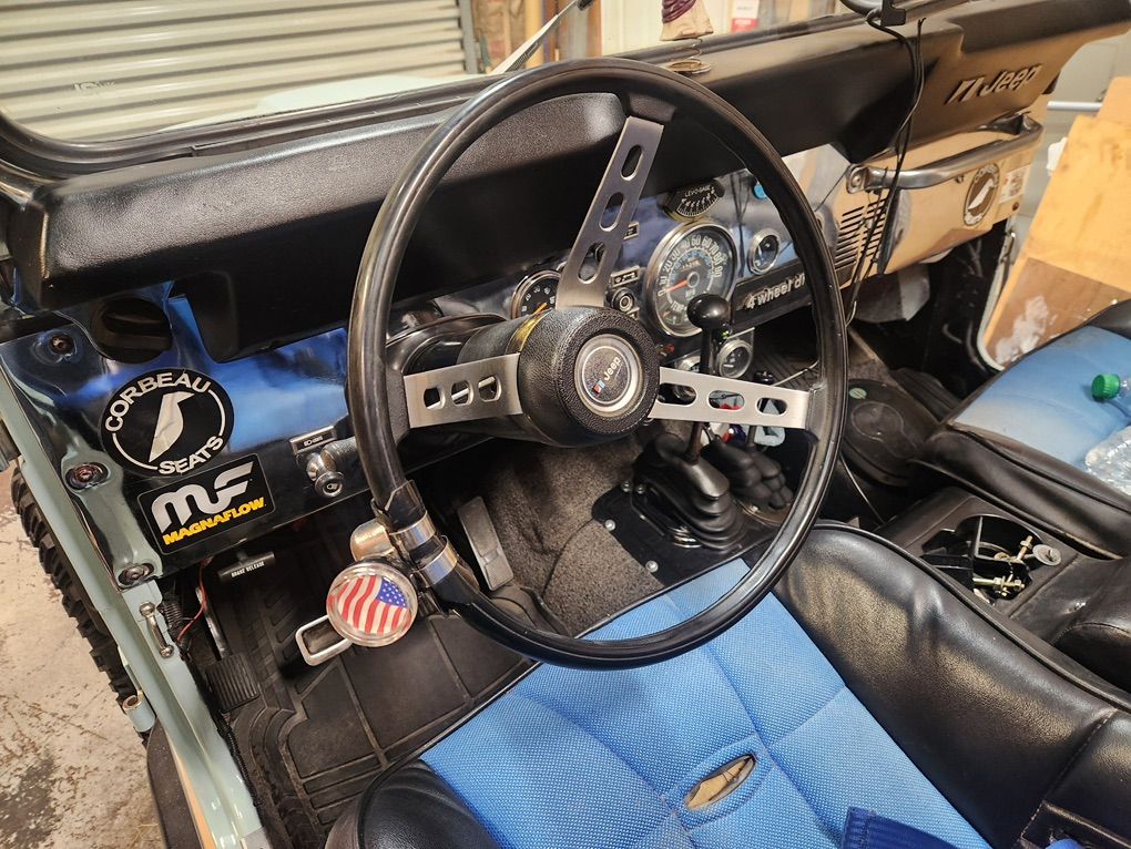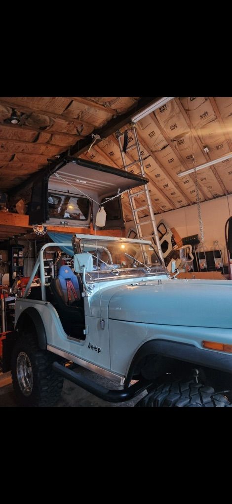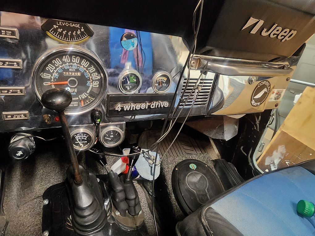 Second owner since 1985 and did a restoration in 2006 with body off. Replaced the AMC 304 V8 with an early 70's AMC 401 from a Jeep truck. Complete rebuild on 401 with 10k spent on motor. Has original axles front and rear. Has a twin stick transfer case mated to original 3 speed manual. Replaced seats with Corbeau Baja's and 4 point harnesses. Rides on 35 inch MT mud terrains mounted on MT 18 inch aluminum slot mags. New aluminum radiator installed. Painless wiring kit installed. Has 12 000 miles on motor since rebuild. Has 20 gallon aftermarket polyethylene fuel tank that wont rust accompanied with an electric fuel pump delivered through three eights aluminum fuel lines. Under body has been sealed with a heavy duty sealer.