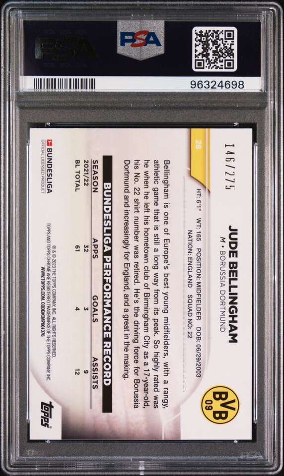 2022 Topps Bundslga Jude Bellingham Aqua Bubble Wave #28 PSA 10