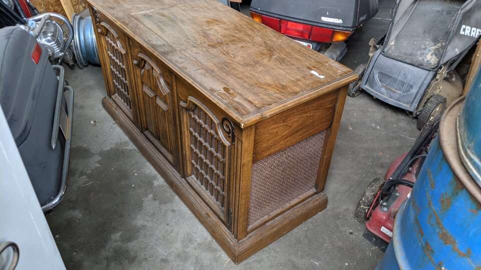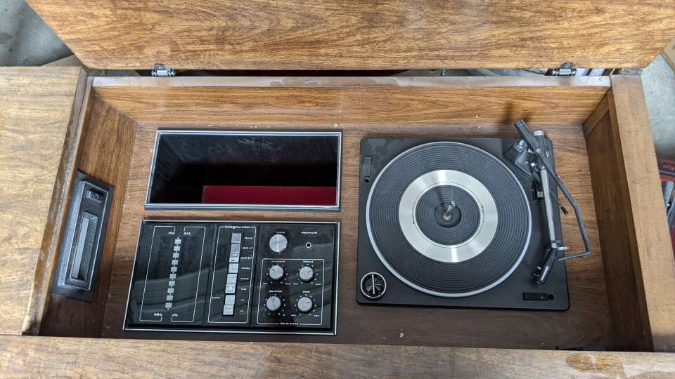 Magnavox console stereo works great. I work crazy hours so text works best.