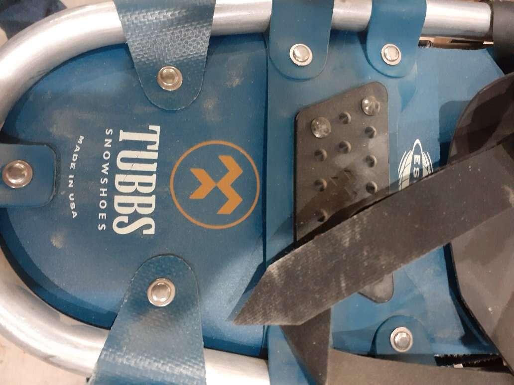 These are very nice light weight snow shoes. Medium size and in great condition. Tubbs are an excellent brand of well made snowshoes. They are easy to fasten and use. just the blue and red Tubbs pair are left.