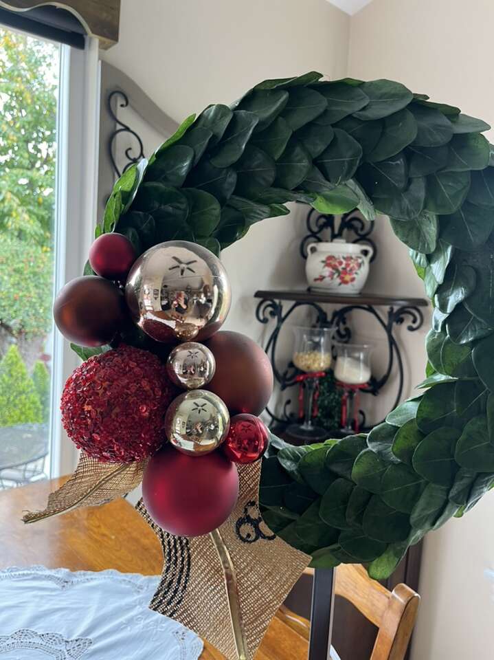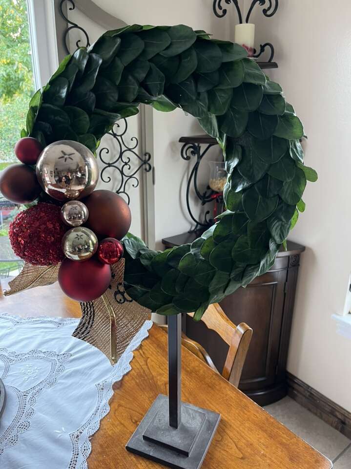 Cute wreath Christmas decoration 29” tall by 18” wide red and green