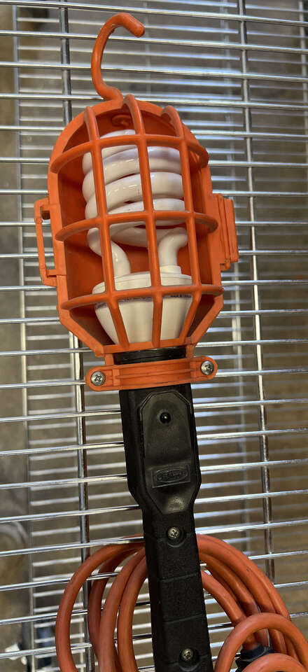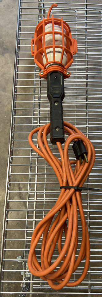 VenmoTrouble Drop Light 19ft Cord Garage Shop Mechanic Caged Handheld. The light is in perfect working condition with a long cord length of 19 feet, The drop light is heavy duty plastic material with an outlet on the handle.