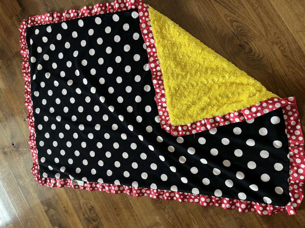 Lap blanket 50 by 36 sized. Does have a little bit of paint as shown in the pictures.