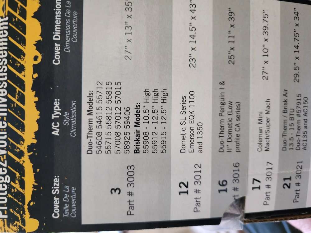 RV air conditioner cover. Brand new never been out of the box. size 3 from ADCO. 27Wx13Dx35L