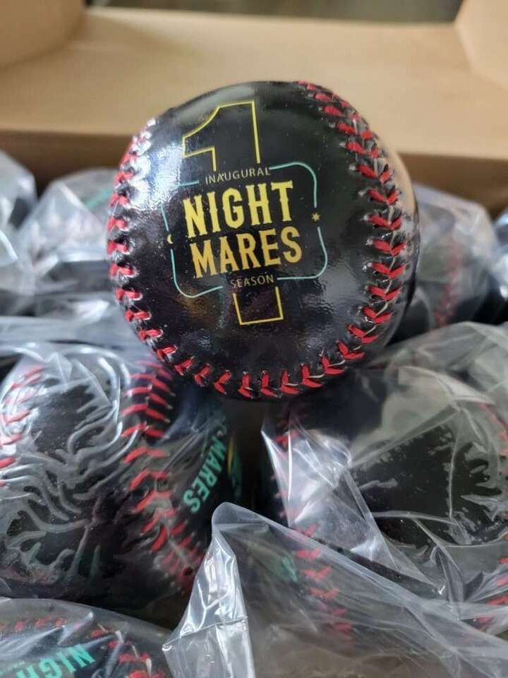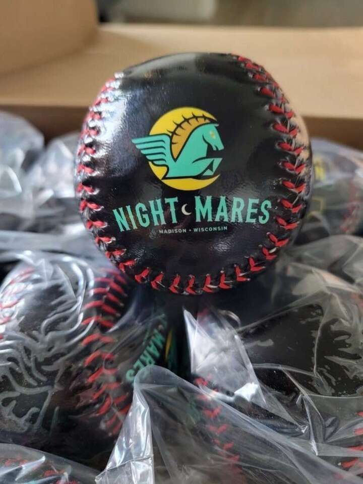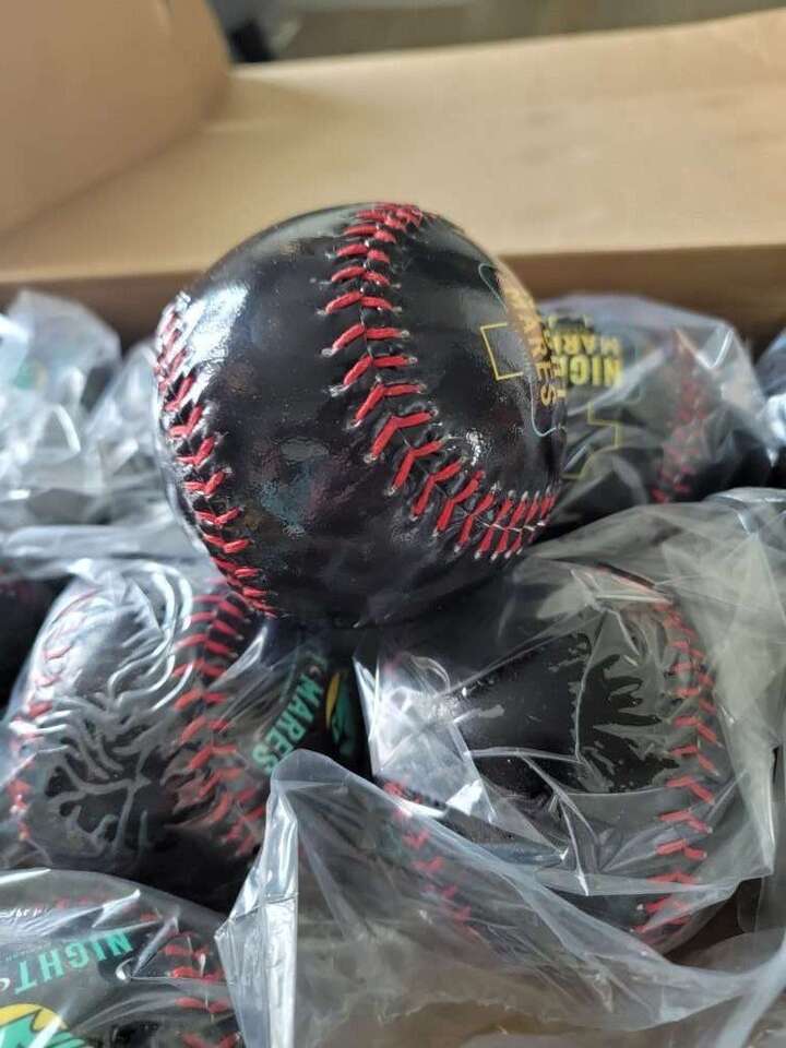 One dozen black softballs. Madison Wisconsin Nightmares Inaugrial Season balls. 12" circumference.