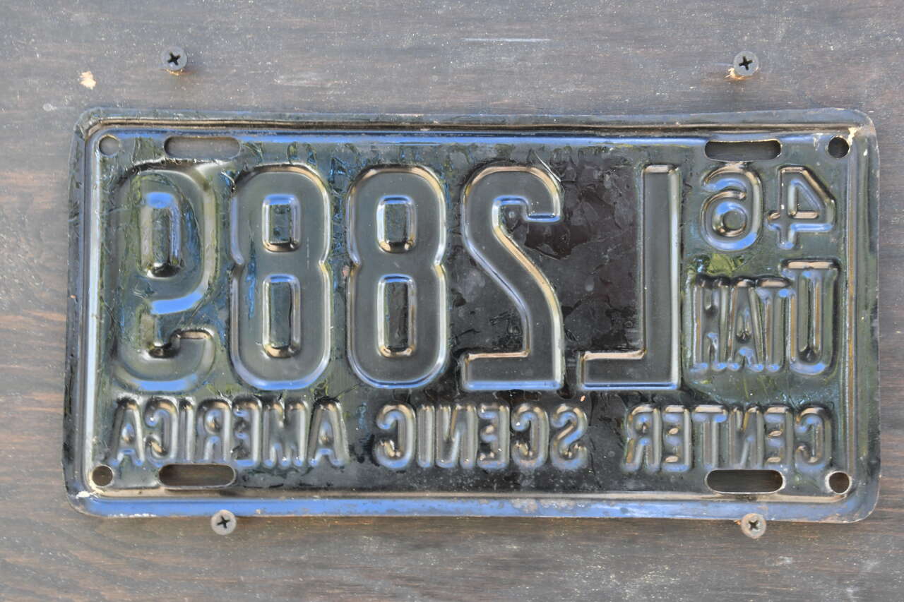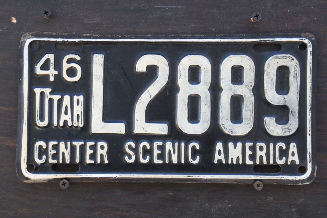Utah Single 1946 License Plate L2889. One of the few years in the 40s that has a logo on the plate. Cash only in Plain City