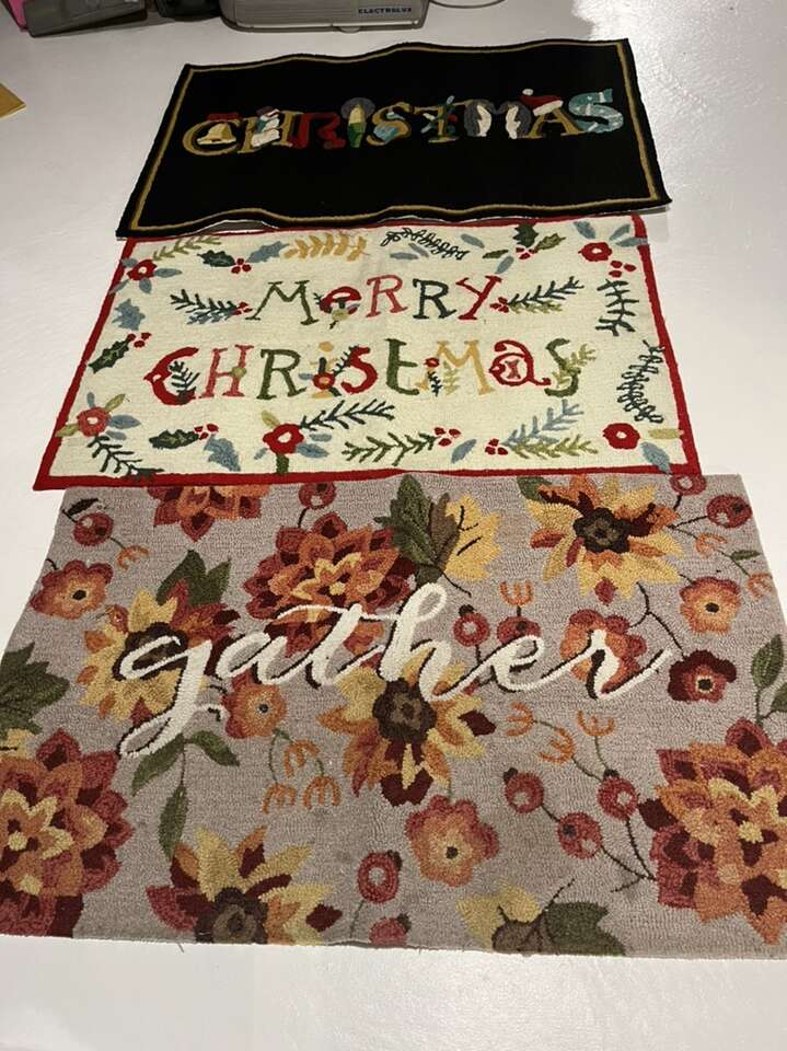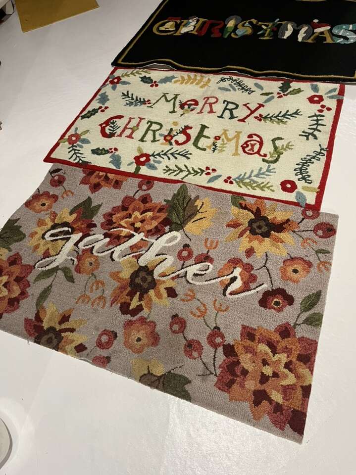 Oversized large holiday rugs! Frontgate brand 2’6 X 4’ $25 each all hand hooked.