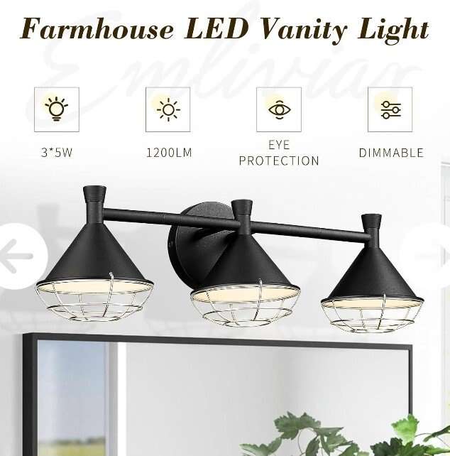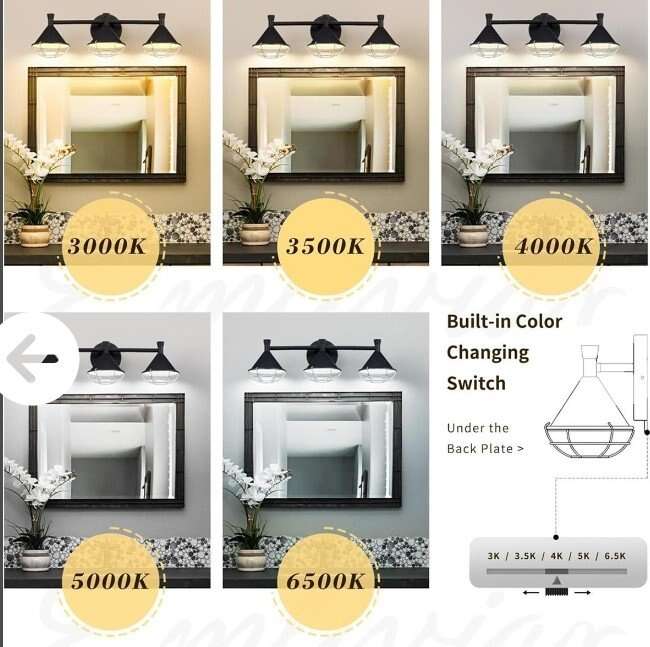 VenmoThis bathroom led light offers 5CCT (3000K/3500K/4000K/5000K/6000K). Just slide the button under the back plate and freely choose soft white/warm white/cool white/daylight color temperature to meet your needs. It's also dimmable from 10% to 100% compatible with most dimmers on the market (dimmer switch NOT included). This black bathroom vanity features cone metal lampshades in black exterior and white interior finish allowing the light to be concentrated. The stainless steel covers are detachable according to your preference or house style. Built-in 15W LED bulbs produce 1200 lumens with a Color Rendering Index (CRI) of 80+ equivalent to a 75W incandescent bulb. No glaring renders colors accurately and long lifespan of 20000 hours. Easy installation. Includes all mounting hardware. Simply pull the wire and twist the tubes until they connect together. Dimension: 23.2" x 6.9" x 7.4"(L x W x H); Back Plate: 5.1" in dia