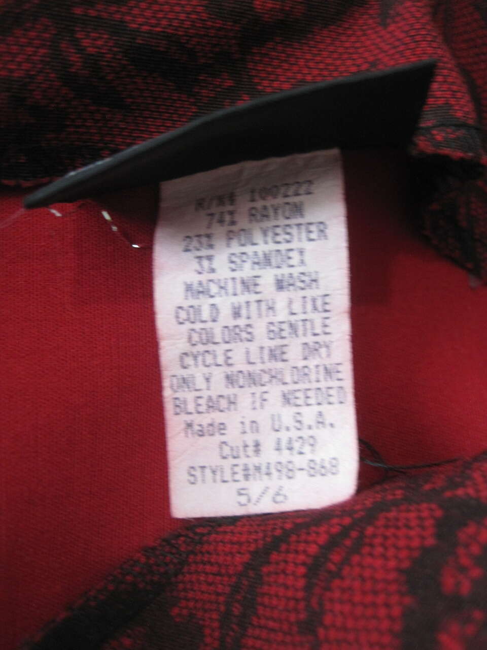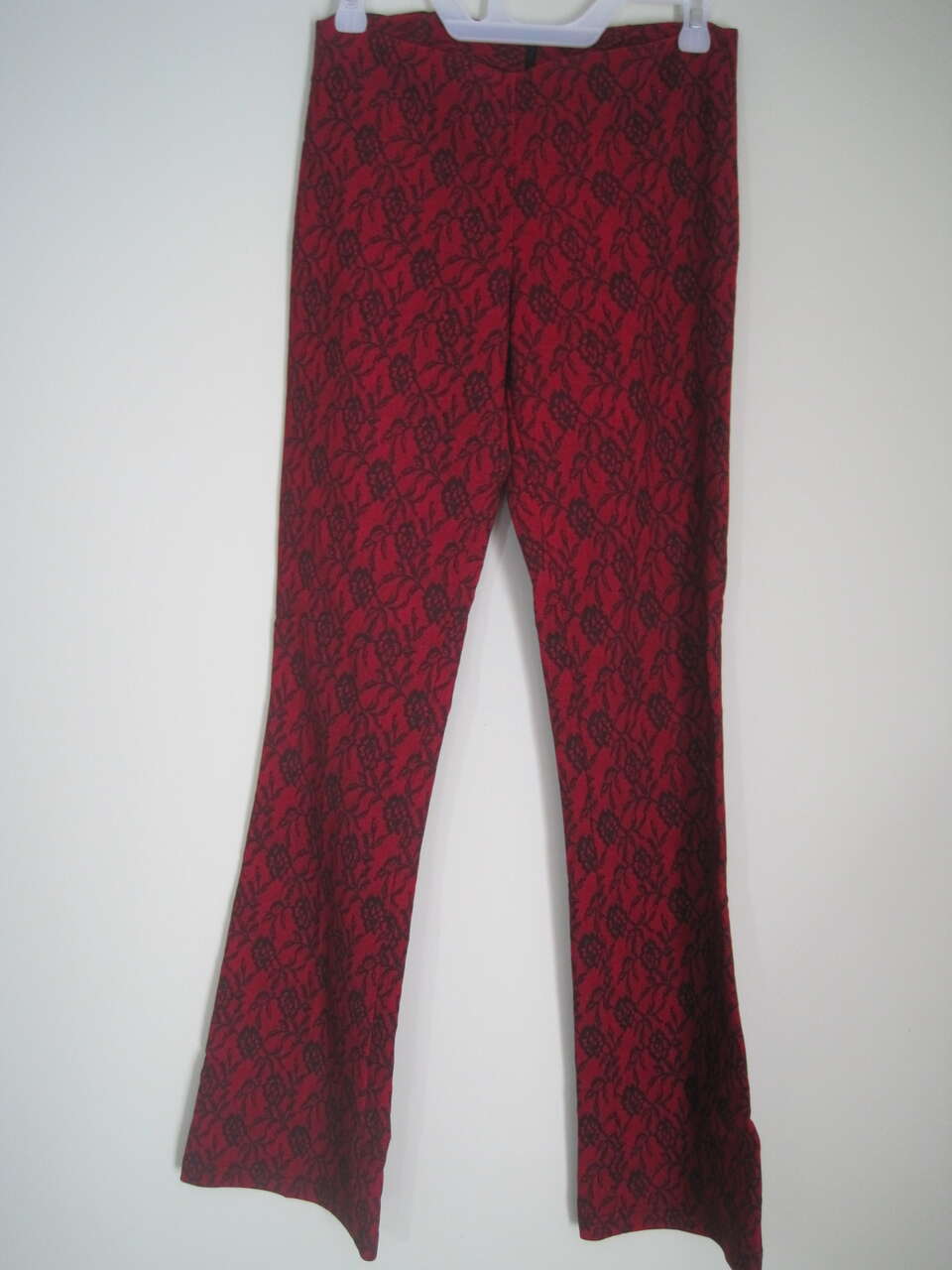 These Luna Chix vintage pants are a must-have for any fashion-forward woman. The red and black floral print adds a touch of Gothic style, while the rayon material ensures comfort and durability. The pants are a size 5/6 and have a waist size of 28 inches, making them perfect for a cocktail occasion. The 1990s design and originality of these pants make them a unique addition to any vintage clothing collection. The waist to hem length is 12 inches, and the inseam is 32 inches. These pants were made in the United States, and their quality and style are unmatched. Add these Luna Chix pants to your wardrobe for a timeless and chic look.