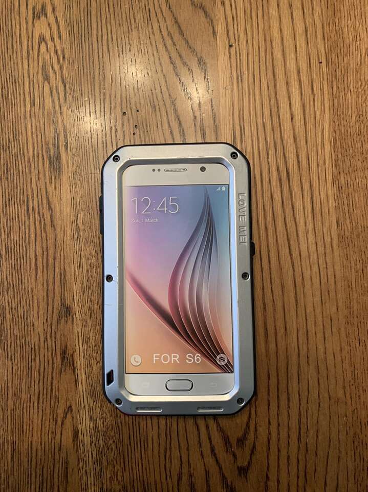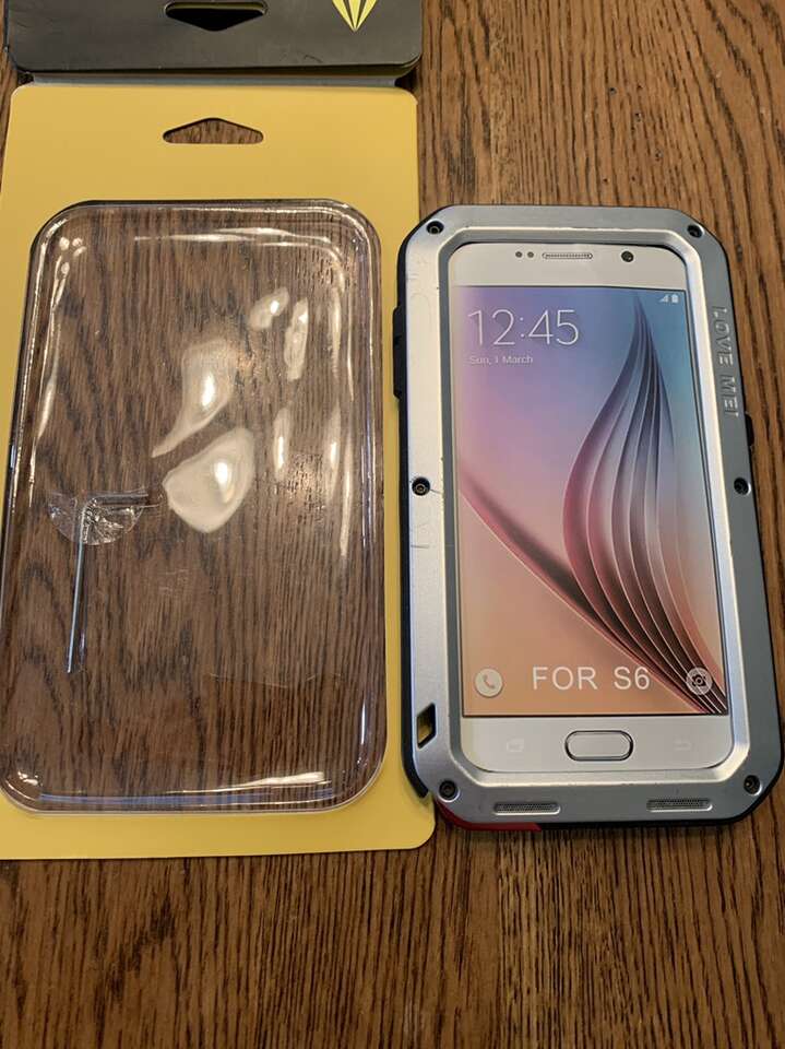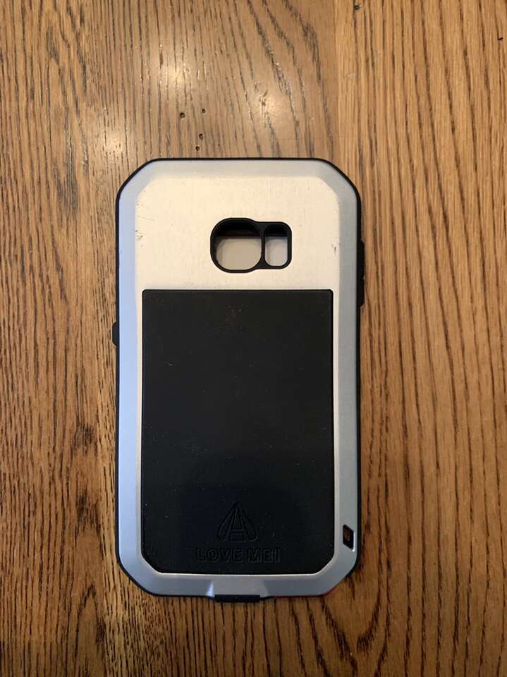 Samsung S6 Silver Love Mei protective case. Some minor scratches on the front & back. Doesn’t have built in screen protector. Heavy duty metal & rubber case, good for construction work as well as everyday life. Selling it because I don’t have that phone anymore. Comes with small Allen wrench.
