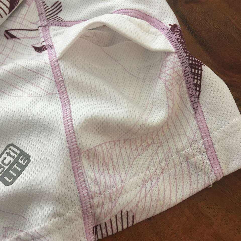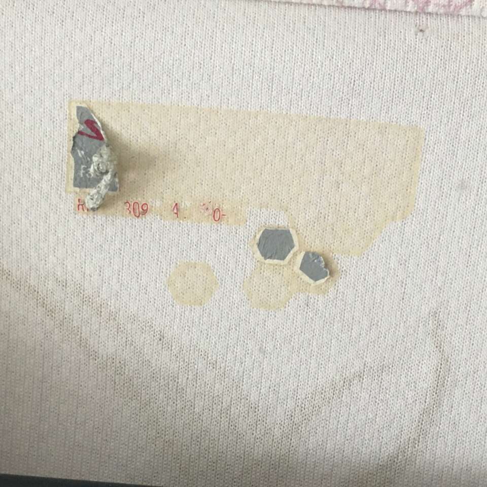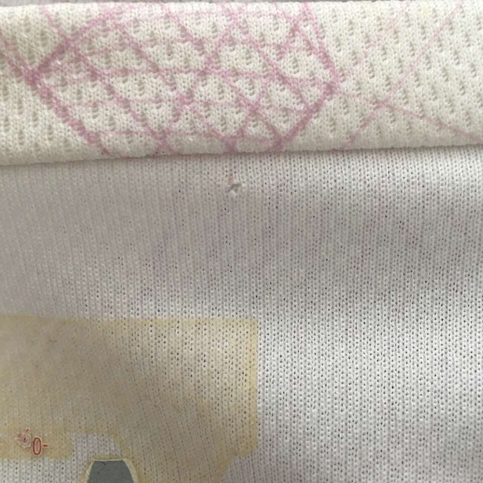 Shirt is in good condition. There is one very small hole in one layer near tag on the inside. See photo.