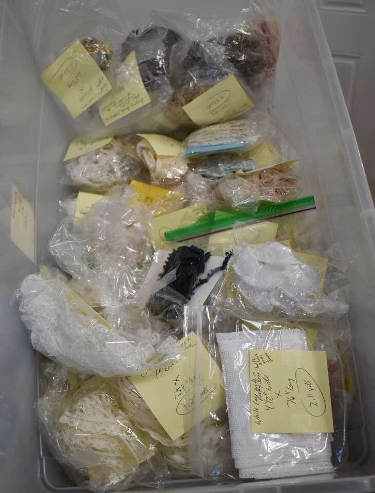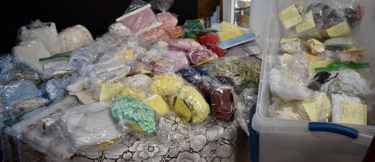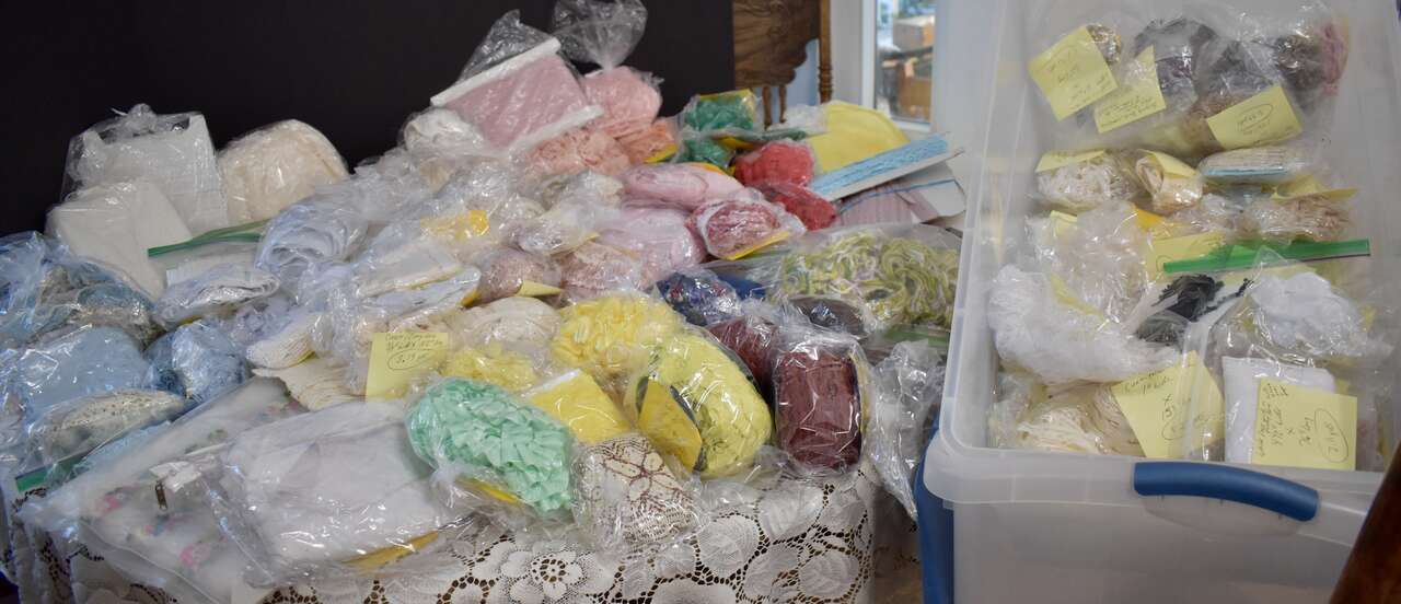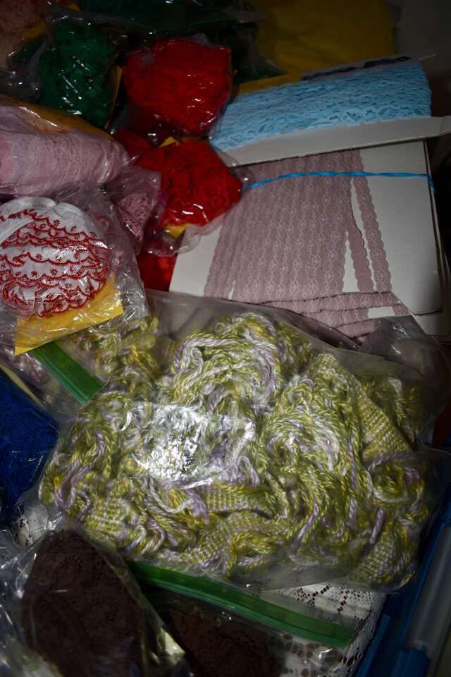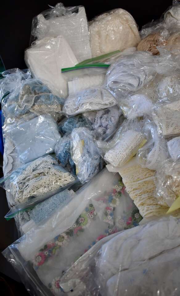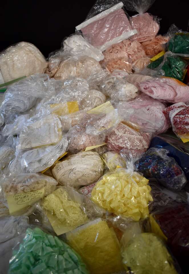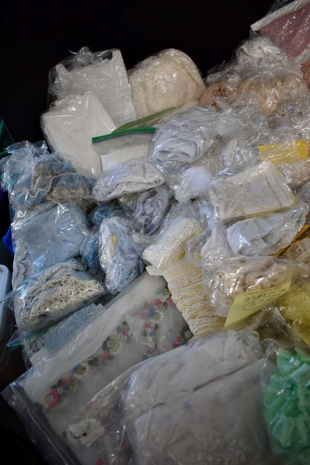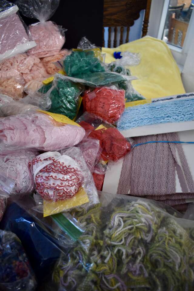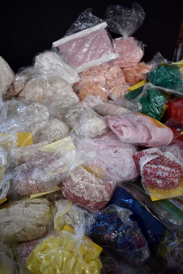 There is White, Creams, Pinks, Blues, Greens, Peach, Orange, Yellows, Reds, Browns, Blacks- Several Multi Colored ones. Some with Tassels and a few Assorted Trims.