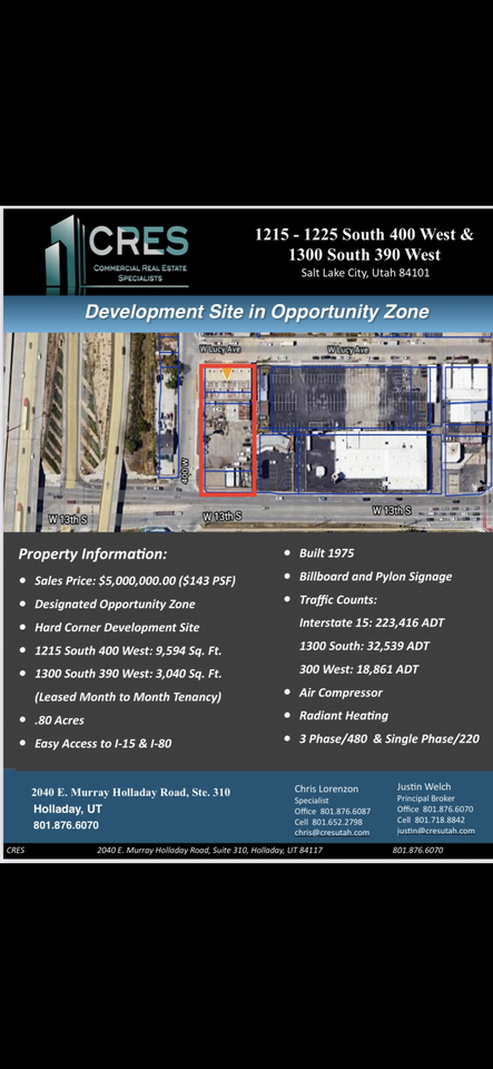 For more information on this property, please contact Justin Welch or Chris Lorenzon at 801.876.6070 or by email at justin@cresutah.com or chris@cresutah.com. Justin Welch and Chris Lorenzon are licensed real estate agent in the State of Utah and is affiliated with CRE Specialists Real Estate Brokerage.