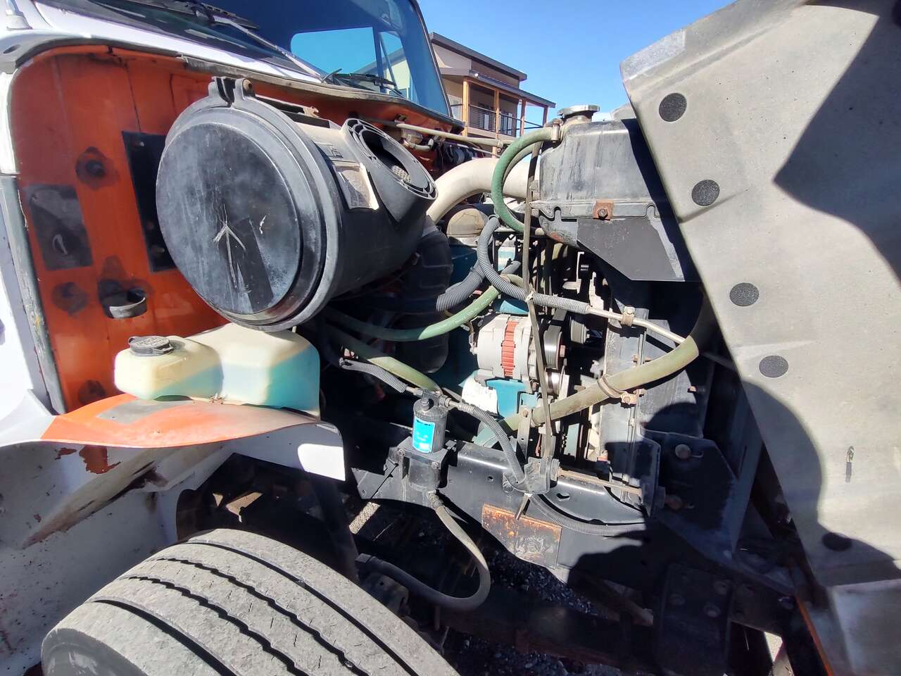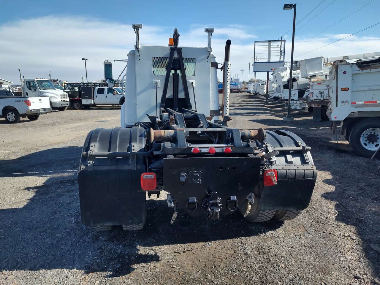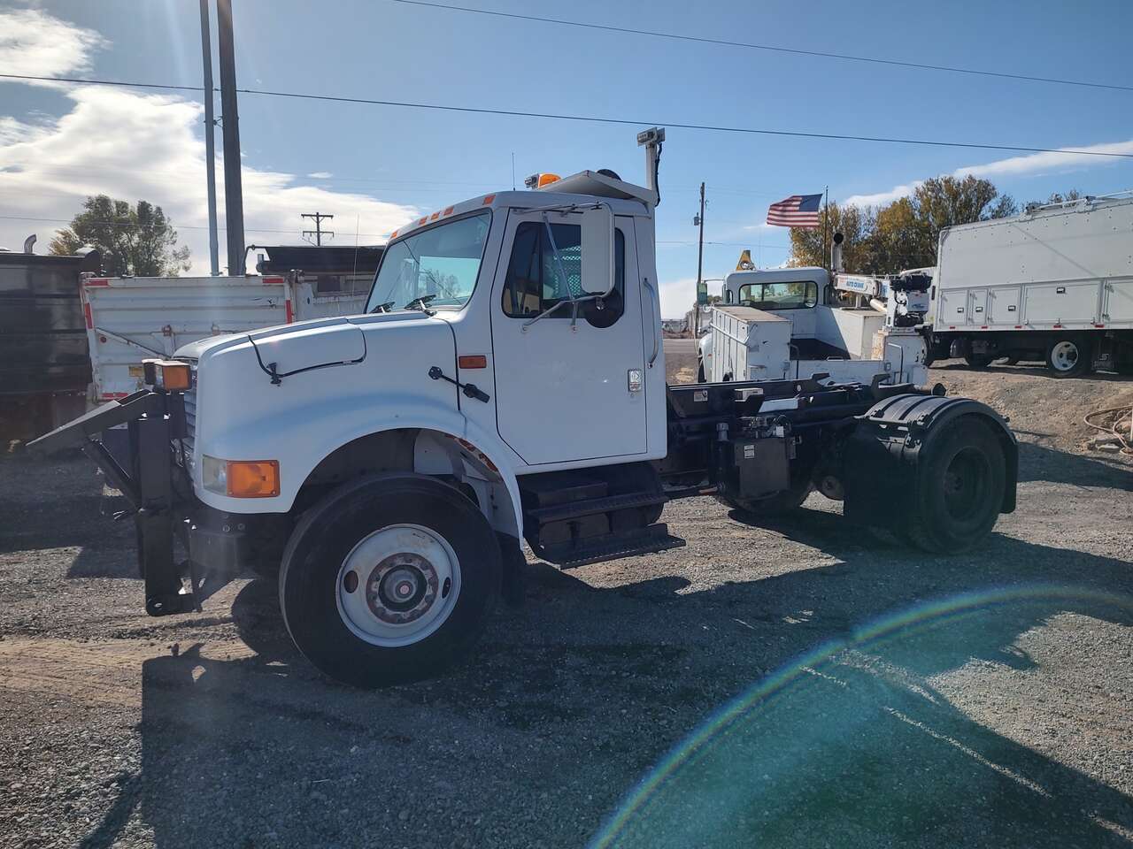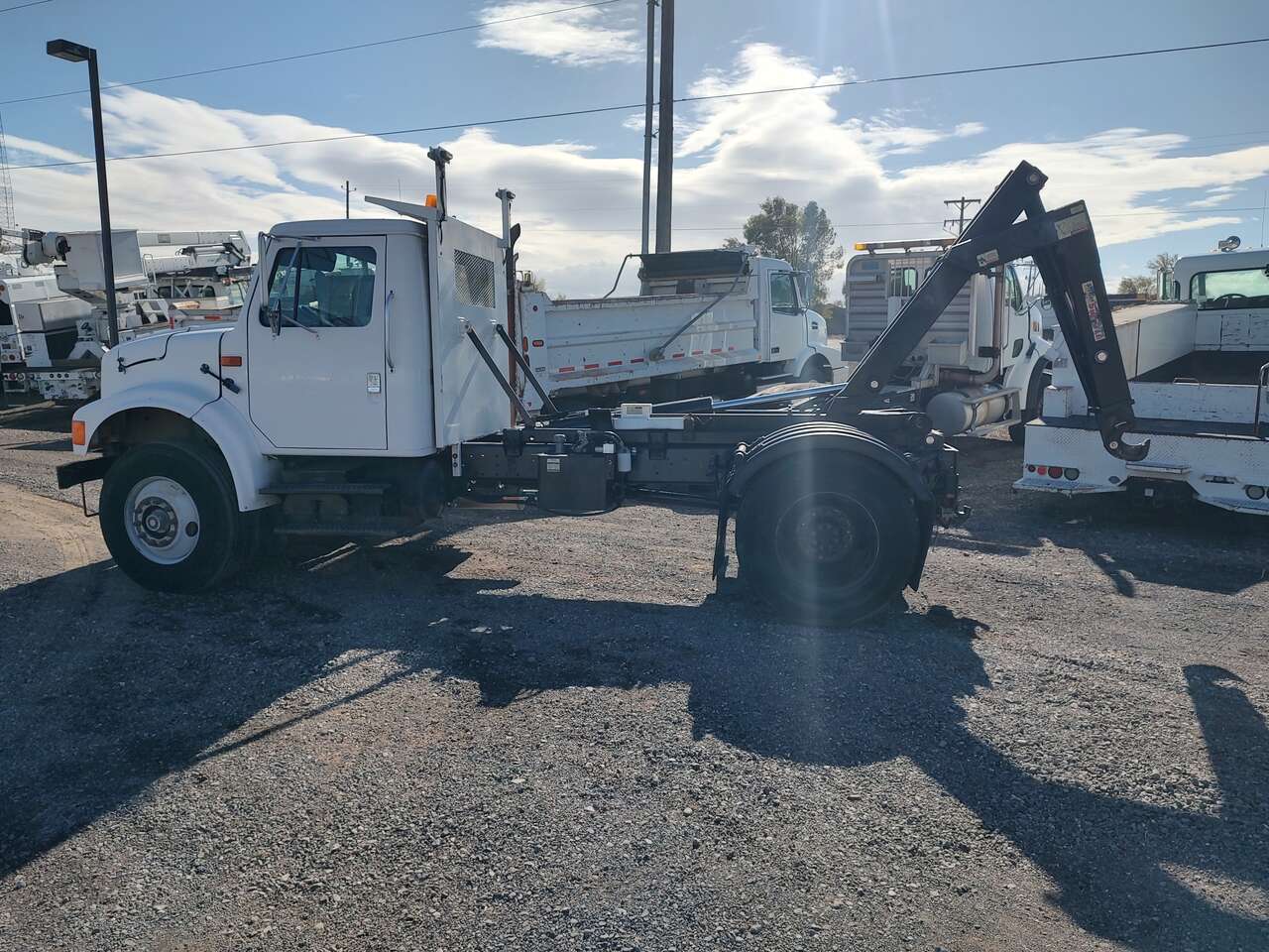 1995 International 4900 Roll Off Dumpster Truck, mechanical DT466 diesel engine, automatic transmission, 131,000 miles, 10,000 hours, 33,000GVW, air to the rear. Stellar 24,000 pound capacity hook lift, 54 inch hook height, 115 inch effective length, 10 foot to 12 1/2 foot bed length, good tires, former municipal truck 208-734-3434