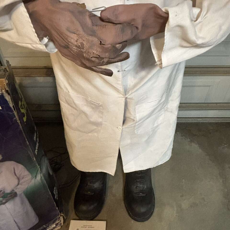 Prop lighting, movements and sound all working. Condition issues listed below. Prop will come with original box, instructions, power adapter, and black pants (not shown in photos). Does not come with a step pad. Please see photos for overall condition