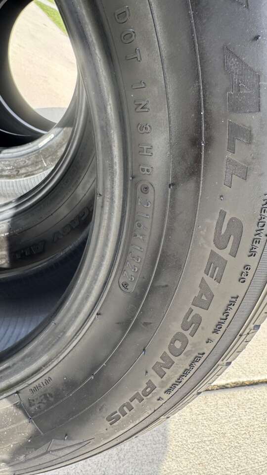 Nice ALL SEASON Big O tires with about 8/32 seconds which is about 80-+% life on them. This set of the top of the line Big O could offer rated at 75,000 miles warranty from the manufacturer. Retail price on this set is about $750 new so this price should be still a great savings.