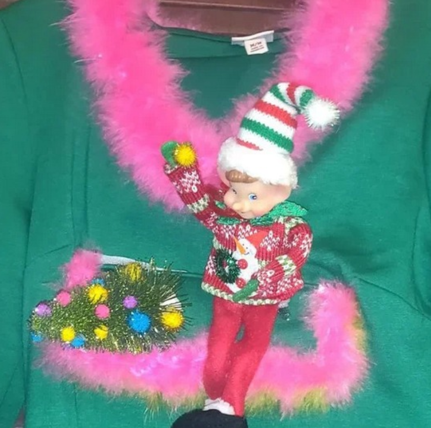 Excellent condition. No holes, stains, or fading. See all pictures Top and pants are made by Merona but the theme of Elf on the Shelf costume is handmade by professional seamstress. One of a kind costume Merona pants are a size 4. 95% cotton 5% spandex Top measures in length at: 28" chest across at 19" inseam arms 16" pants inseam of legs 28" waist laying flat across at 15.5" See all pictures. You will get this fun unique set shown in all pictures