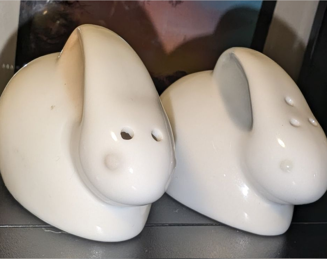 Clean. No flaws. Smoke free home. SEE ALL PICTURES. Made in Japan little bunny rabbit s&p shakers. Measures 2"x3".