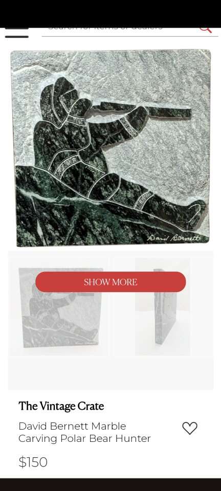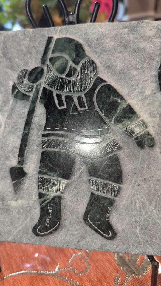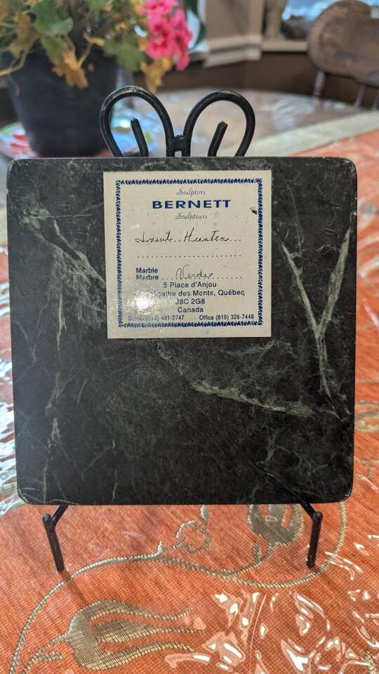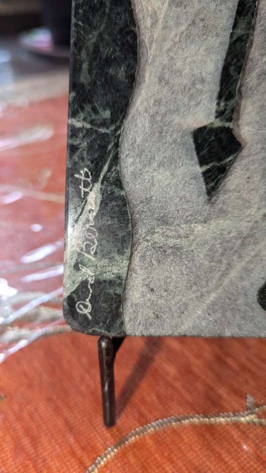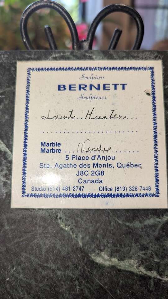 David Bernett Signed Carved Green Marble Sculpture "Inuit Hunter" 7" X 7" COA