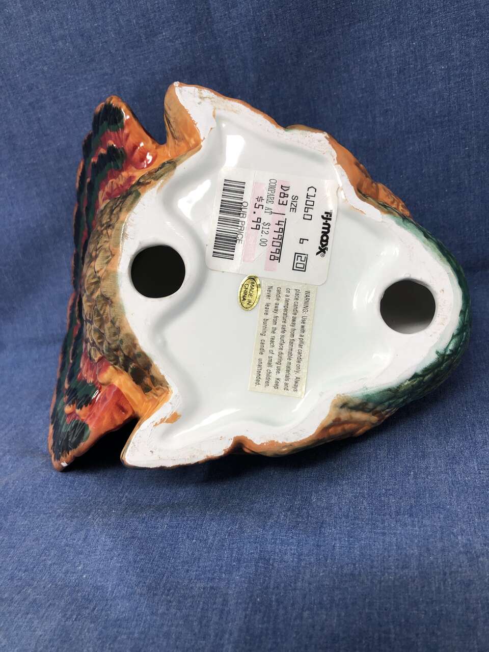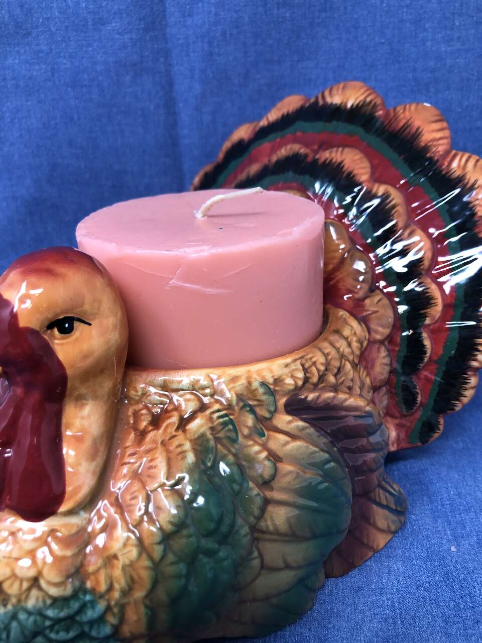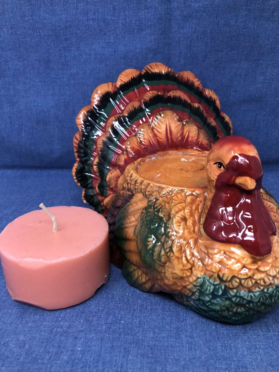 VenmoBeauty and function combine in this beautiful seasonal candle holder. Each feather is defined, beautifully painted, and glazed to shine its brightest. The 1/4 depth will hold any of the melted wax from any 3 candle of your choosing. Yes! It does include this candle! The candle holder itself measures 7x6x6.5