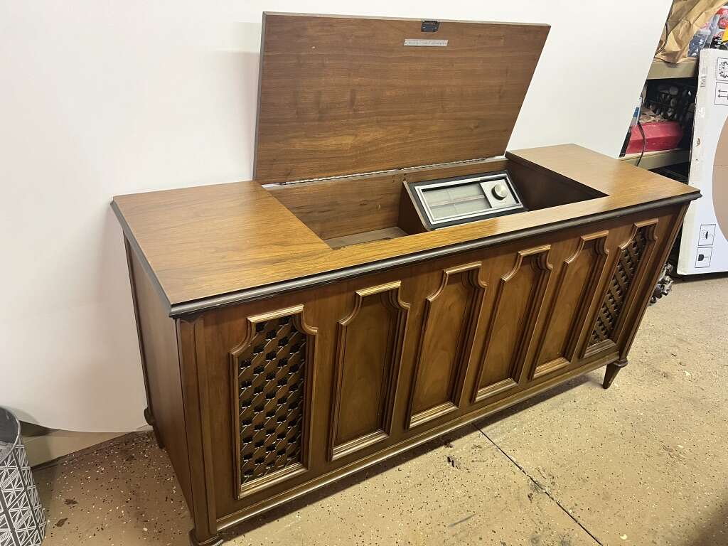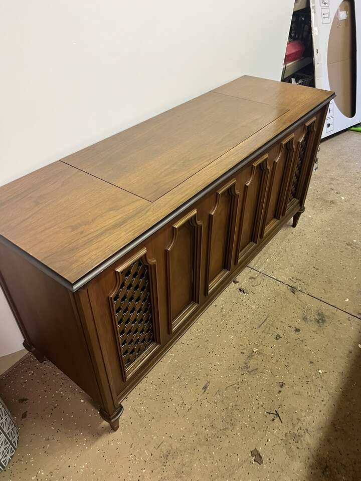 VenmoWood Vintage Stereo $200 Use as a buffet Radio works still 58”W 18”D 29”H It is heavy