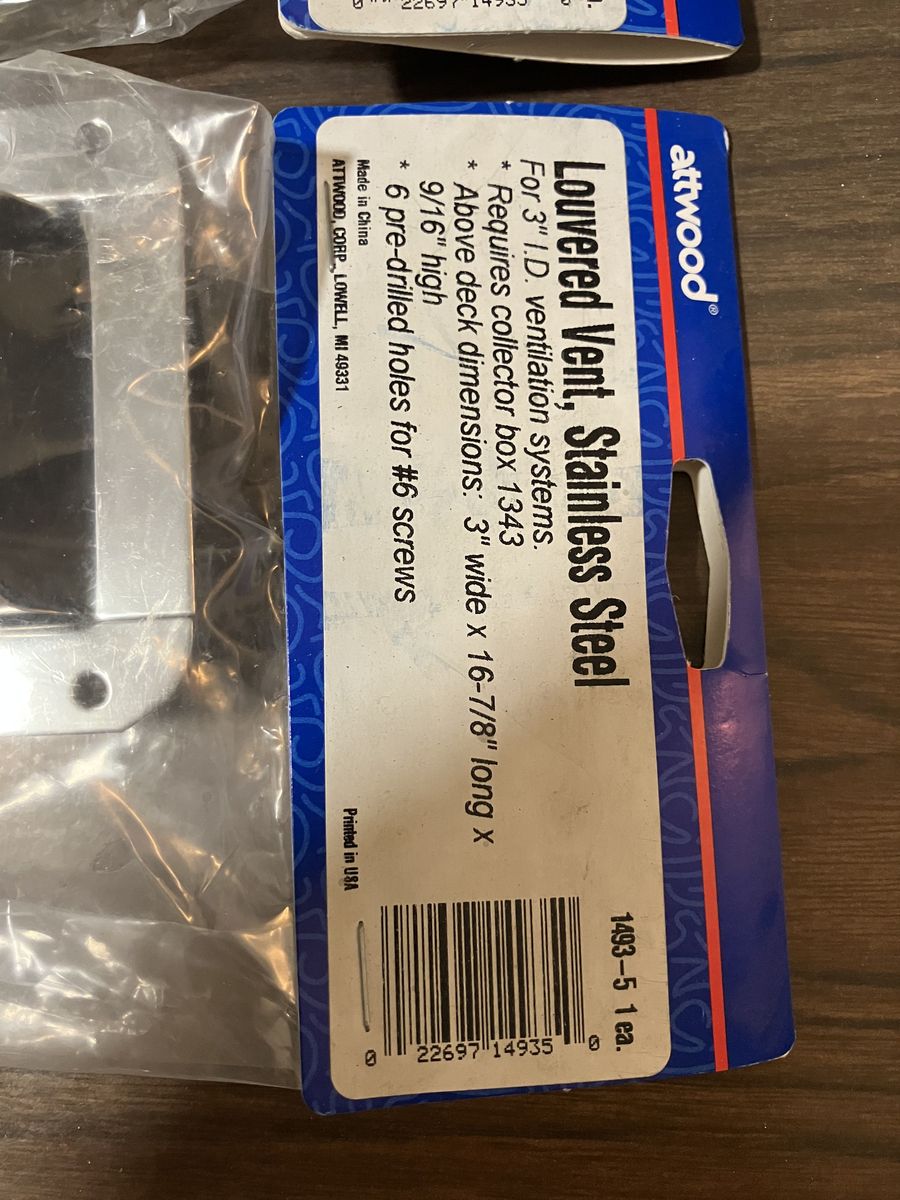 Attwood Louvered Narrow Stainless Steel Vent, #1202100 - NEW. Price is for Each. Have Four (4) Available. Call or Text. CASH ONLY!